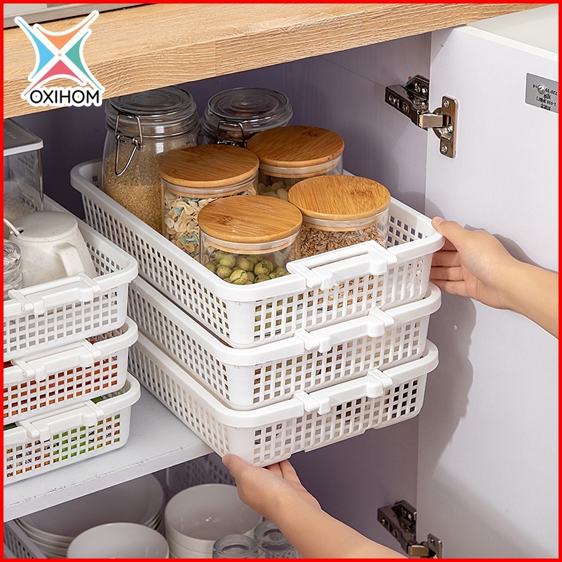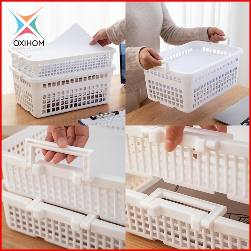Oxihom Keranjang Plastik Tempat Penyimpanan Perlengkapan Rumah Kantor