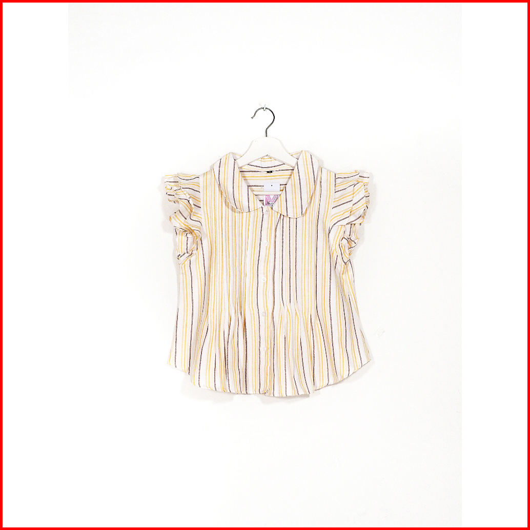Mascot Kemeja Salur Wanita Tangan Pendek Salur Lengan Rumbai M. 2432 Atasan Katun Wanita