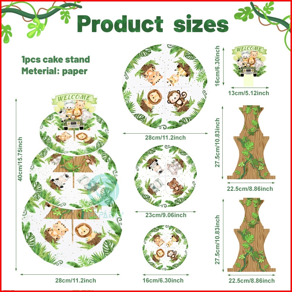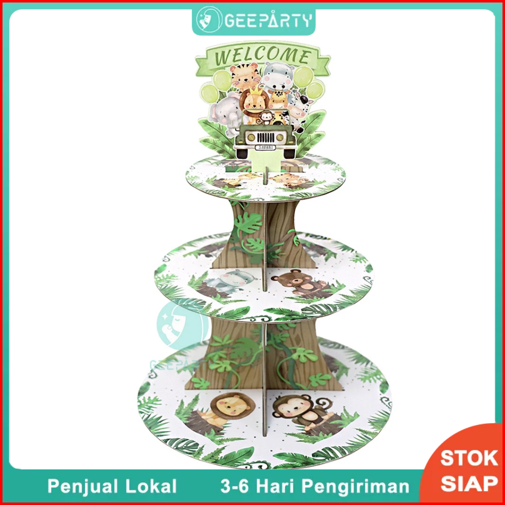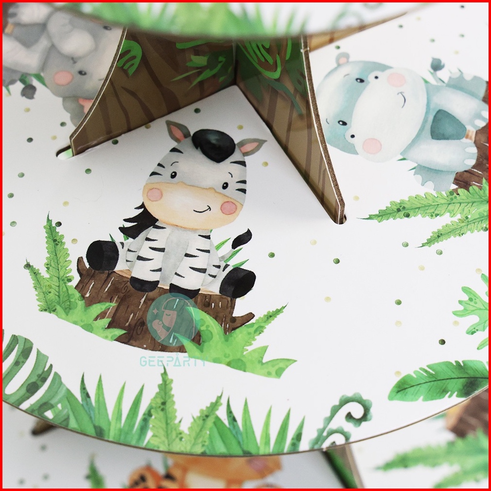 3 Tingkat Hewan Tempat Kue Dudukan Cupcake Stand Untuk Dekorasi Pesta Safari Hutan Pesta Ulang Tahun