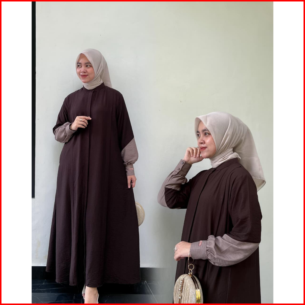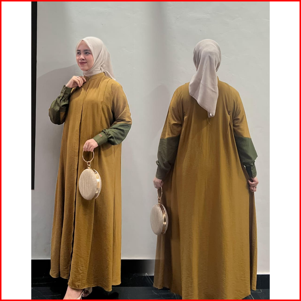 Sabrina Dress Gamis Polo Linen Terbaru Lebaran Muslim Simple Elegan Wanita