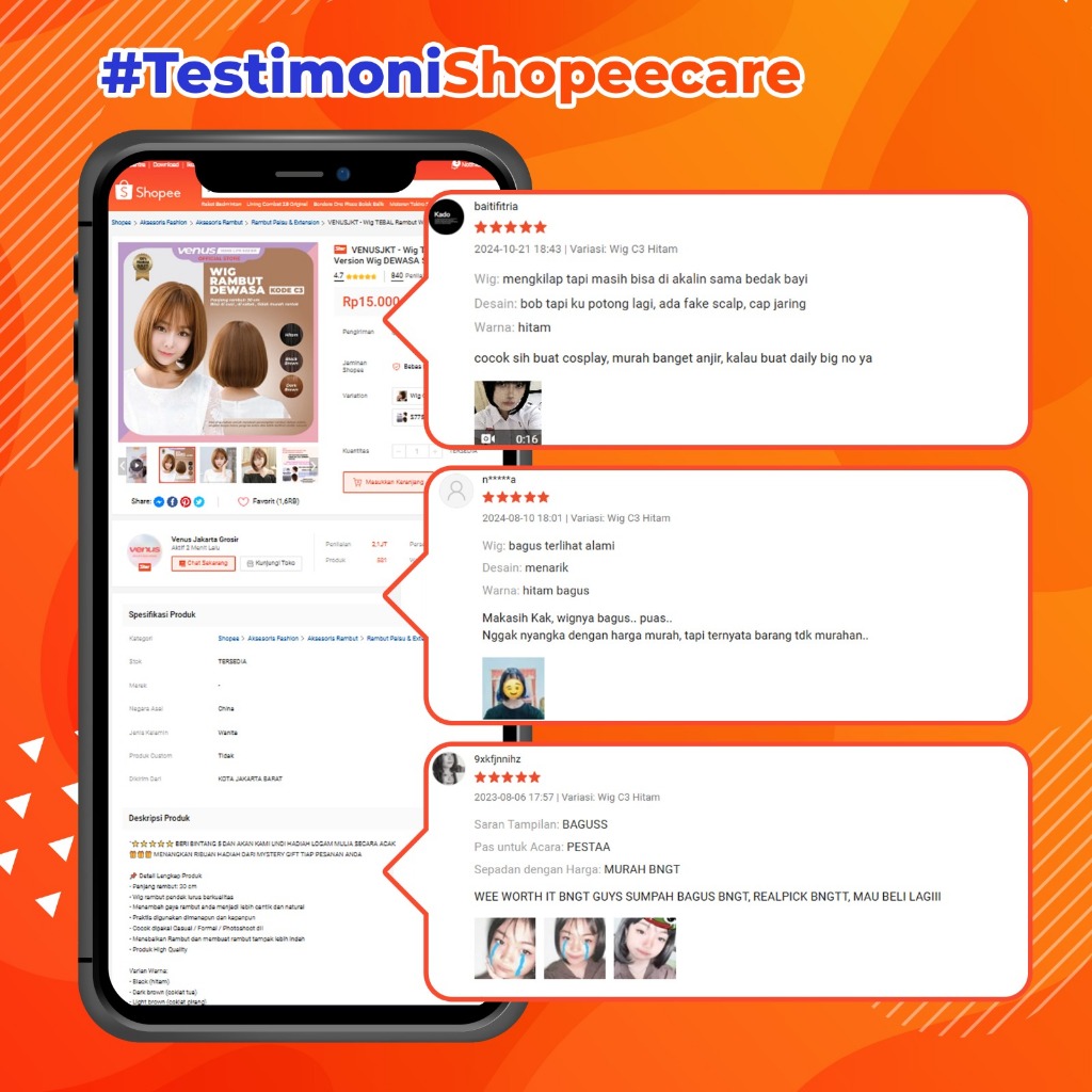 Olsee - Wig Tebal Rambut Wig Poni Pendek Lurus Wanita Korean Version Wig Bob Dewasa Short Hair Women Berkualitas / Alami