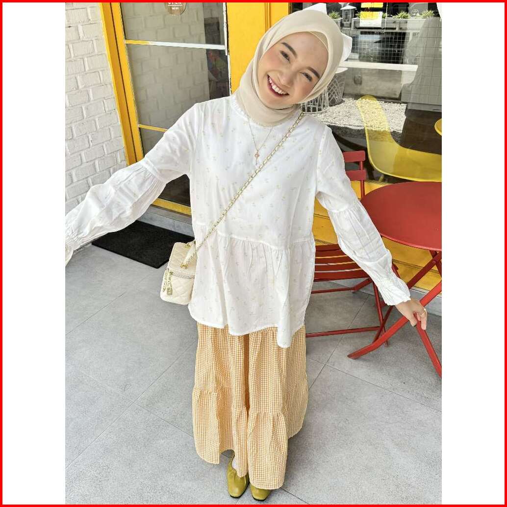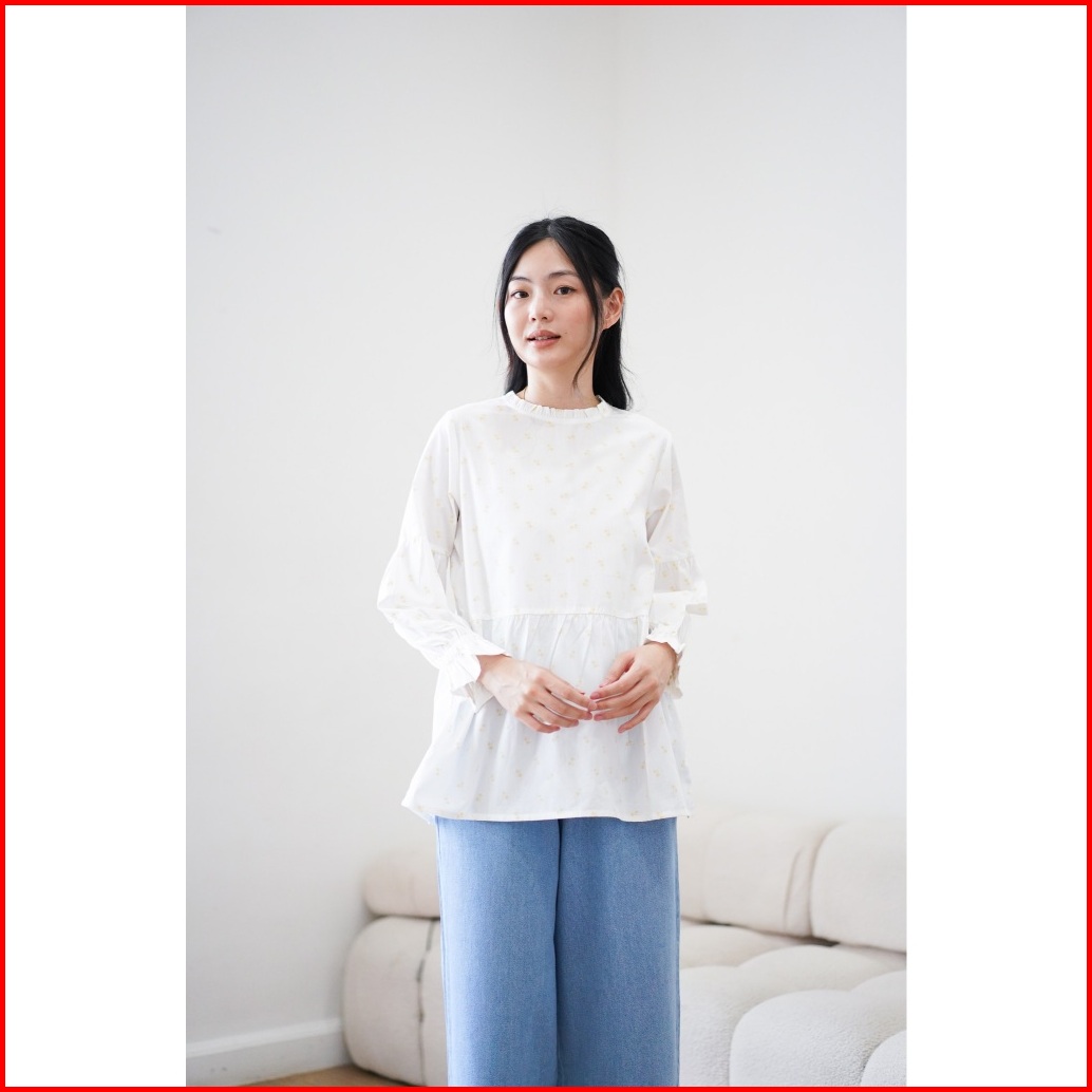 Ultraviolet Buba Ruffle Top 114 White Ylw Twinkle - Atasan Blus Wanita Korean Style