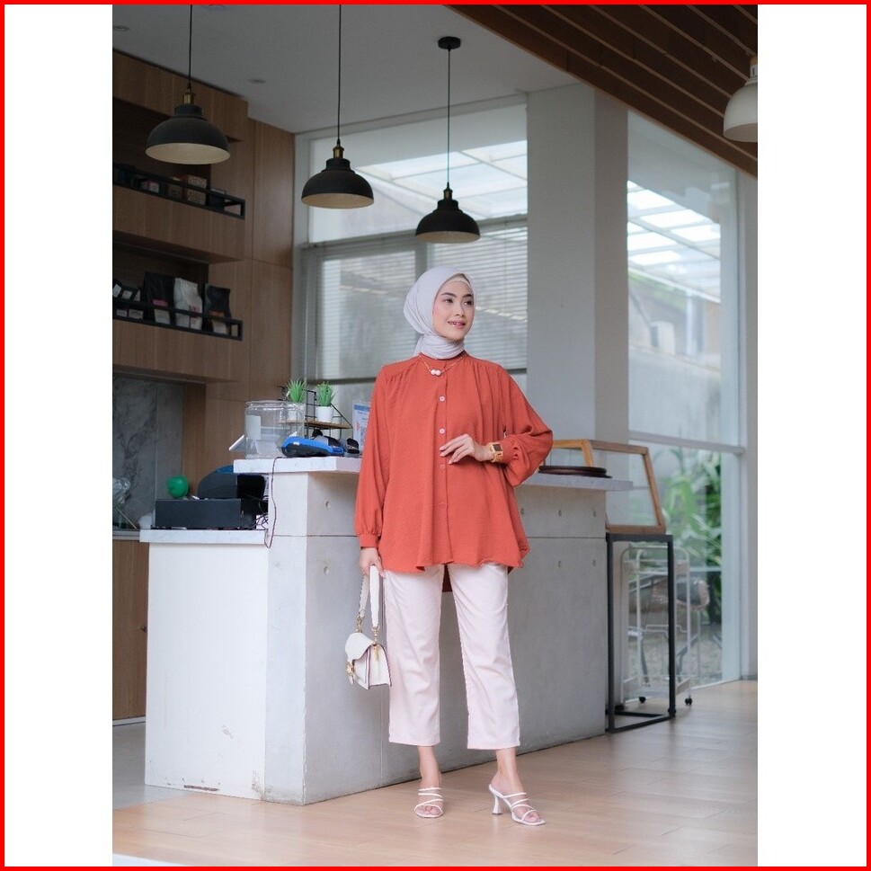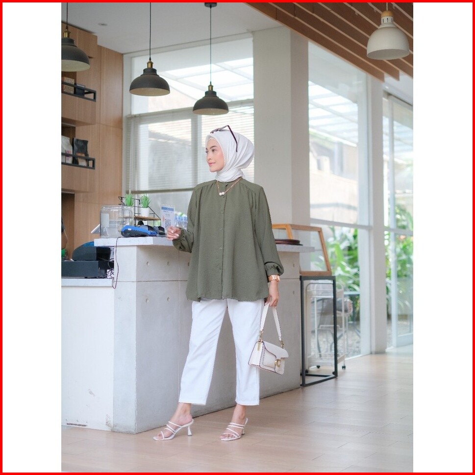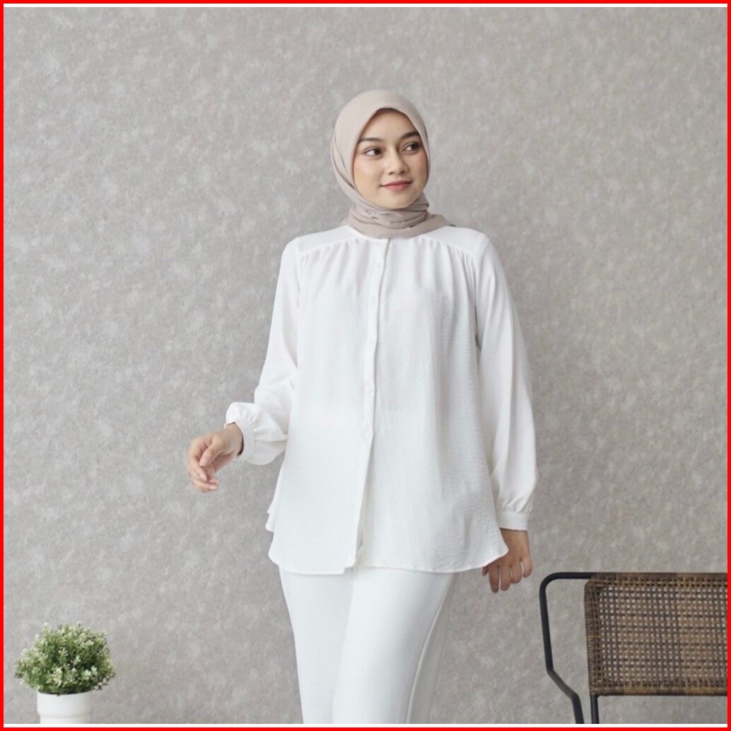 Geneaby - Kemeja Alina Blouse Wanita Kerah Shanghai Crinkle Airflow Freya Skirt Lengan Panjang Full Kancing Depan Busui