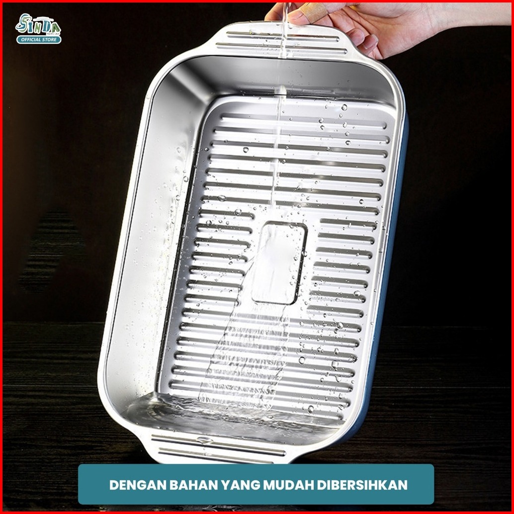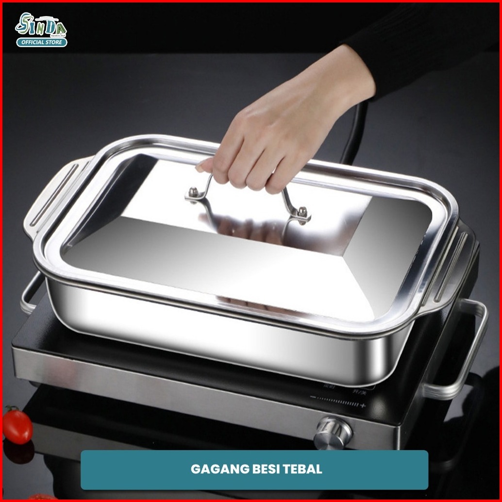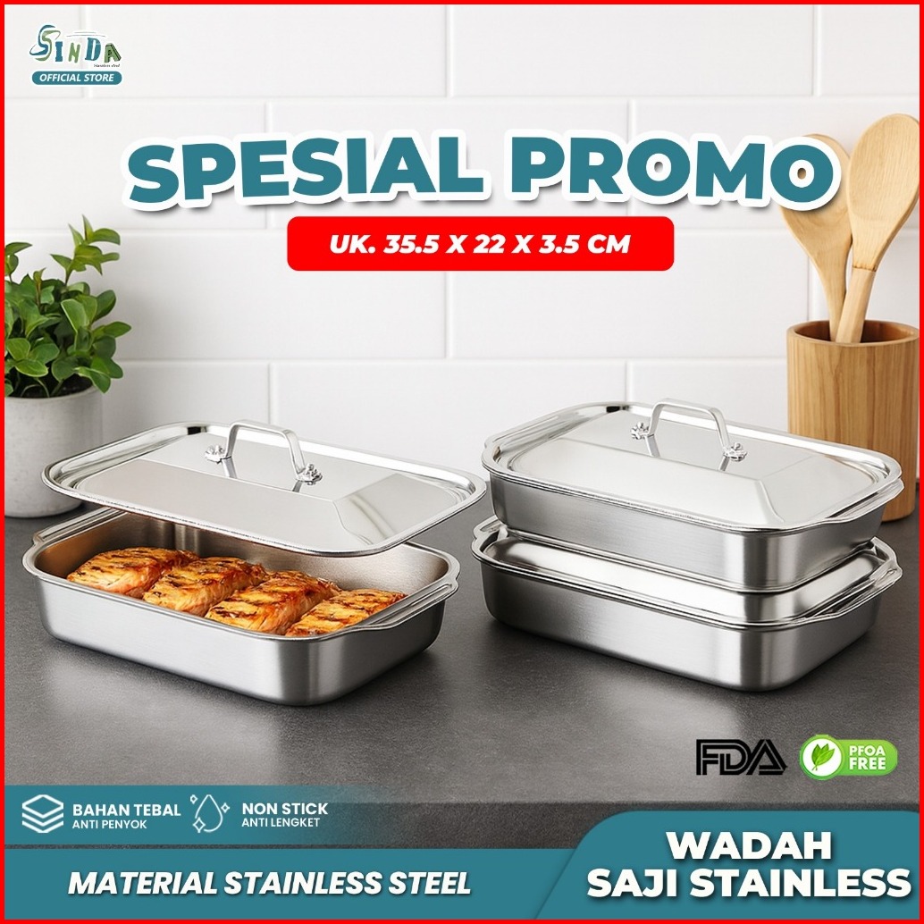 Sinda Paket 3pcs Wadah Prasmanan Catering Nampan Stainless Steel Wadah Saji Lauk Tutup