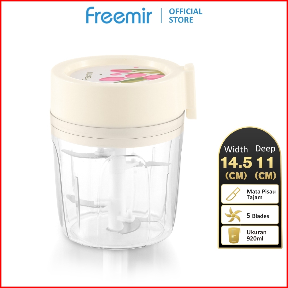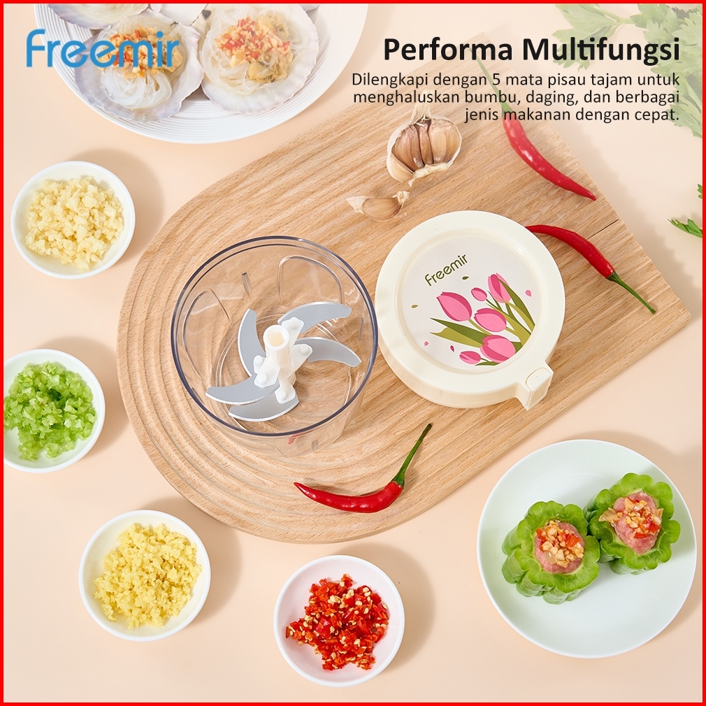 Freemir Chopper Manual 5 Bilah Alat Penggiling Penghalus Daging Pencincang Bumbu Blender 980ml