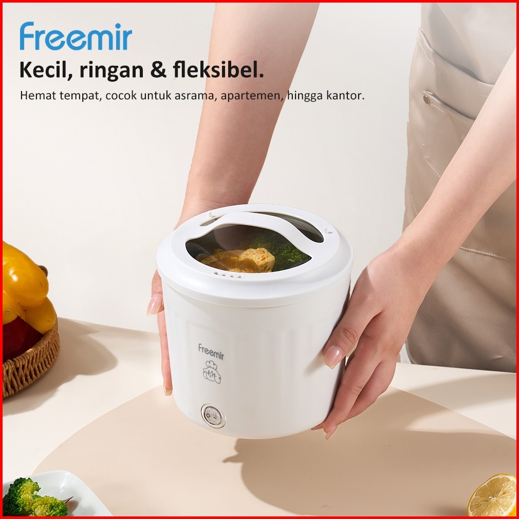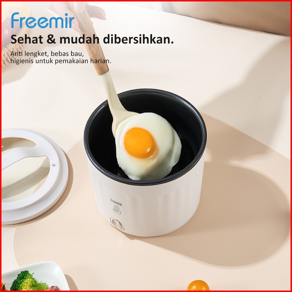 Freemir Mini Cooker Panci Elektrik Portable Kukusan Serbaguna 15cm 1.2 Liter Beige Garansi 1 Tahun