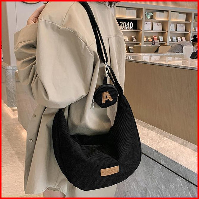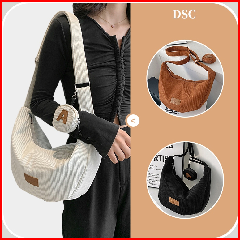 Tas Bahu Wanita Selempang Tas Wanita 2 In 1 Nylon Sling Bag Shoulder Round Bulat Tas Kanvas Tas Korea Hitam