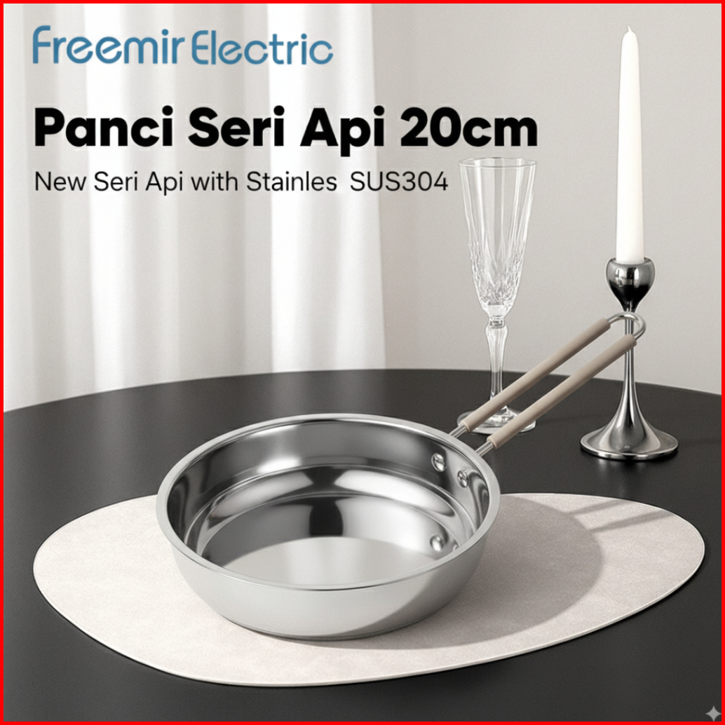 Seri Api Freemir Electric Panci Penggorengan Frypan 20cm Stainless Sus 304 Gagang Anti Panas Panas Merata