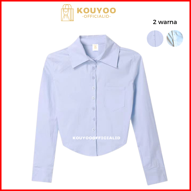 Kouyoo Blouse Wanita Korean Style Kemeja Wanita Gaya Korea Kemeja Kasual Warna Polos Lengan Panjang