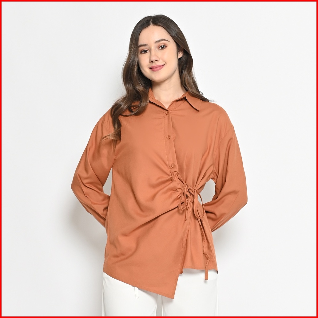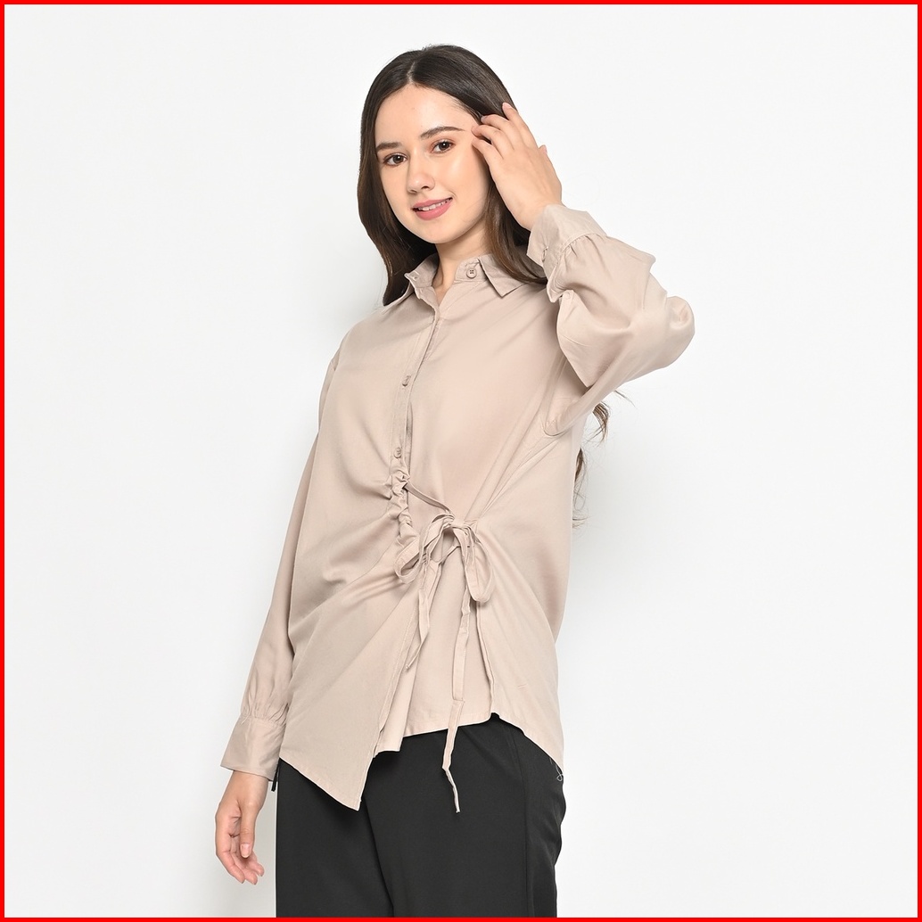 Queentin Kemeja Blouse Casual Wanita 0470 Katun Primacool Polos Premium Lengan Panjang