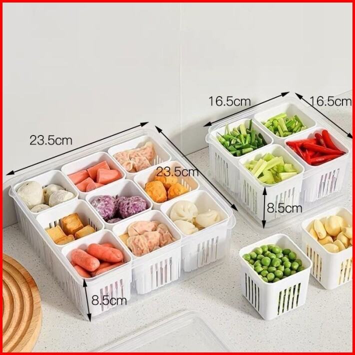 Sbn78 Kotak Saringan Wadah Cabai Bawang Jahe Buah Sayuran Dengan Saringan 6in1 9in1 Wadah Kotak Penyimpanan Bumbu Dapur