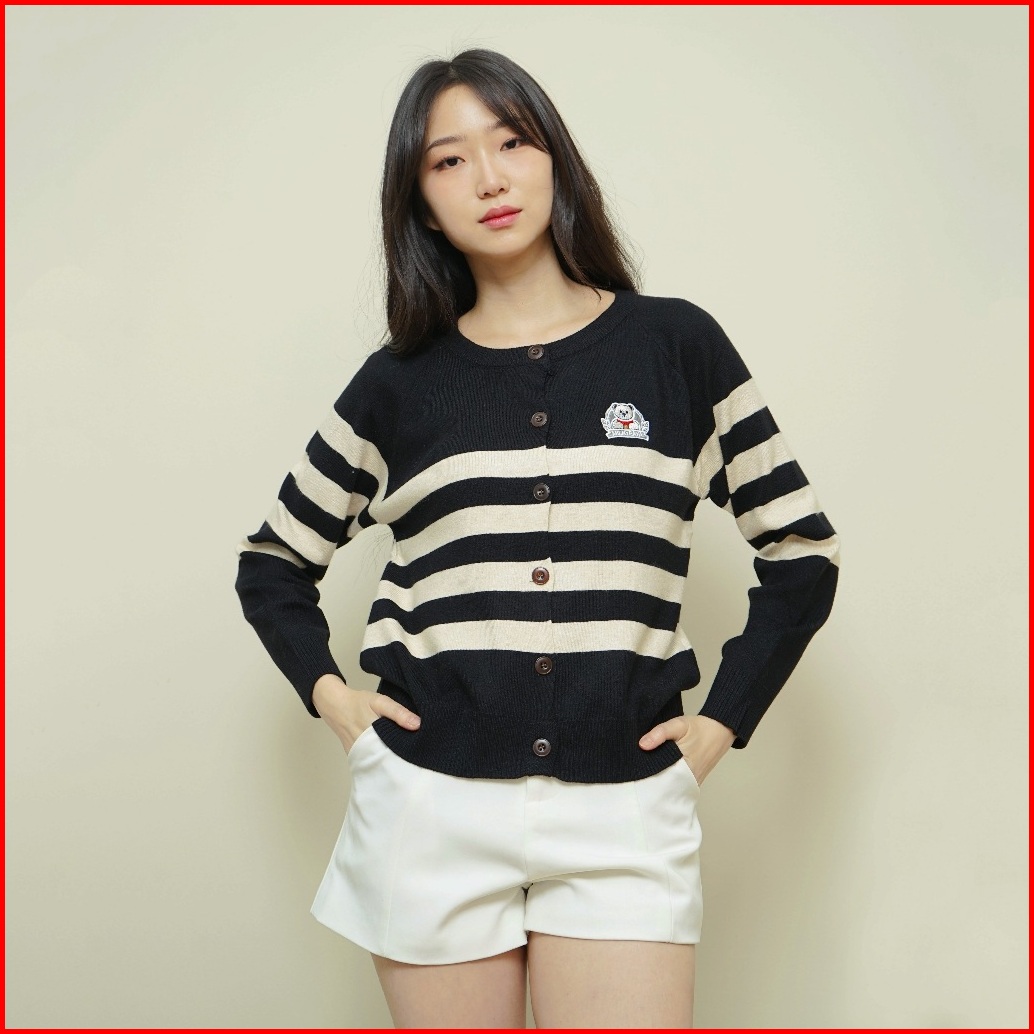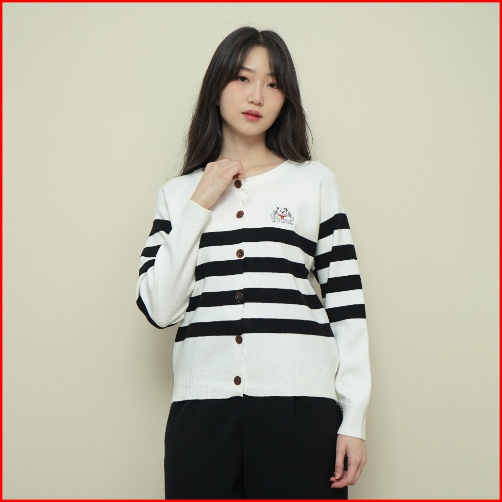 Queentin Cardigan Wanita Rajut 2847 Viscose Polyamide Knit Stripe Bordir Lengan Panjang