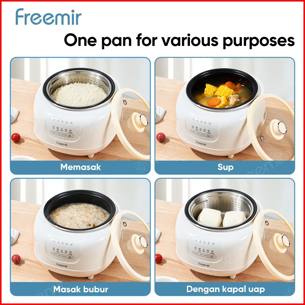 Freemir Electric Rice Slow Cooker 1.5l Steamer 304 Magic Com Mini Low Watt Mpasi Rebus-kukus