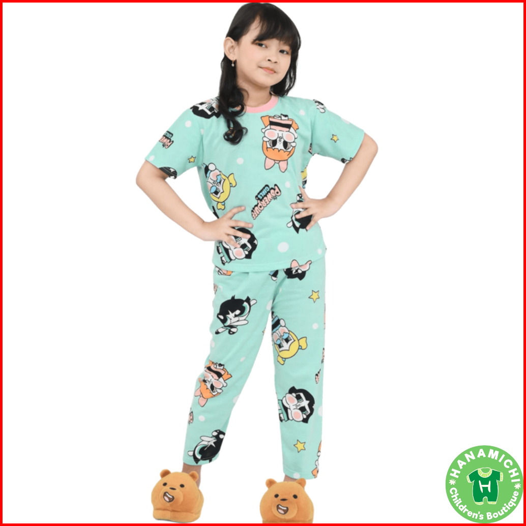 Hanamichi Anne.cp Setelan Baju Tidur Anak Perempuan Lengan Pendek Full Print 1-15thn