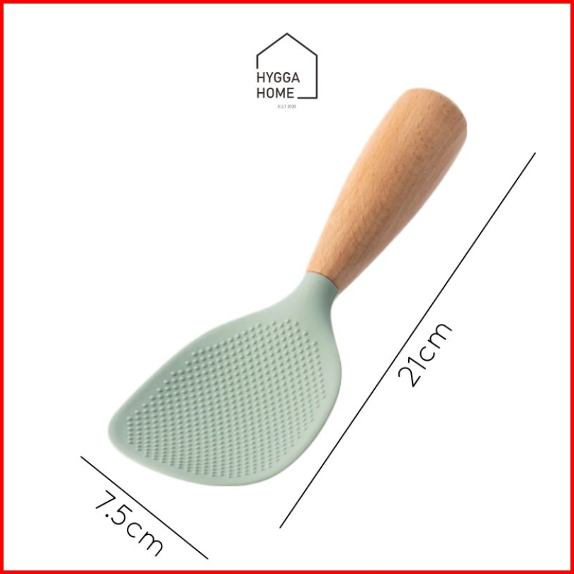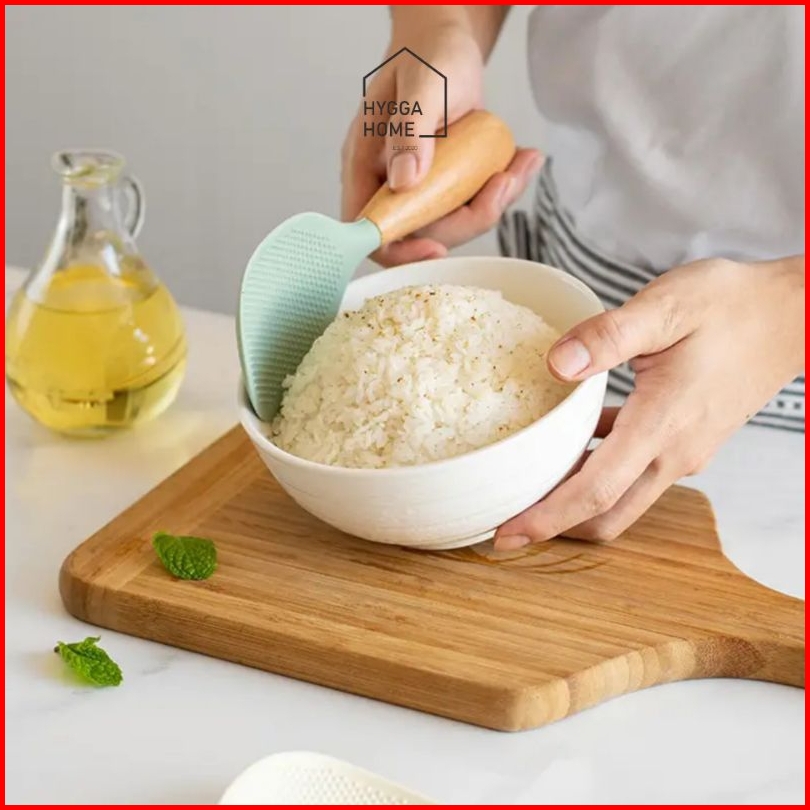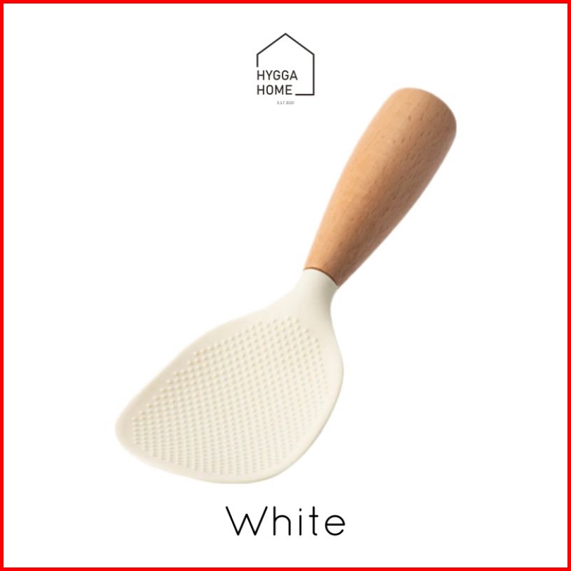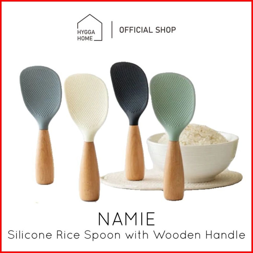 Hygga Home Namie Standing Rice Spoon Centong Nasi Berdiri Silikon Gagang Kayu Estetik Anti Lengket