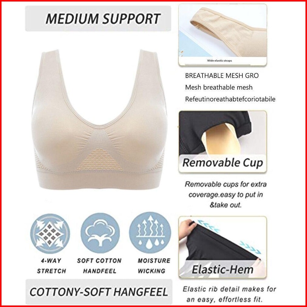 Isi 3pcs S-3xl Sport Bra Ada Busa Jumbo Wanita Tanpa Kawat Seamless Push Up Bra Senam Gym Yoga Elastis Bh S6