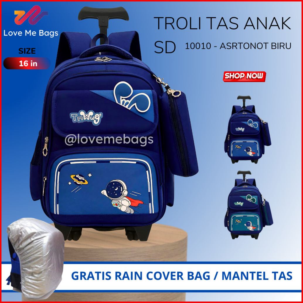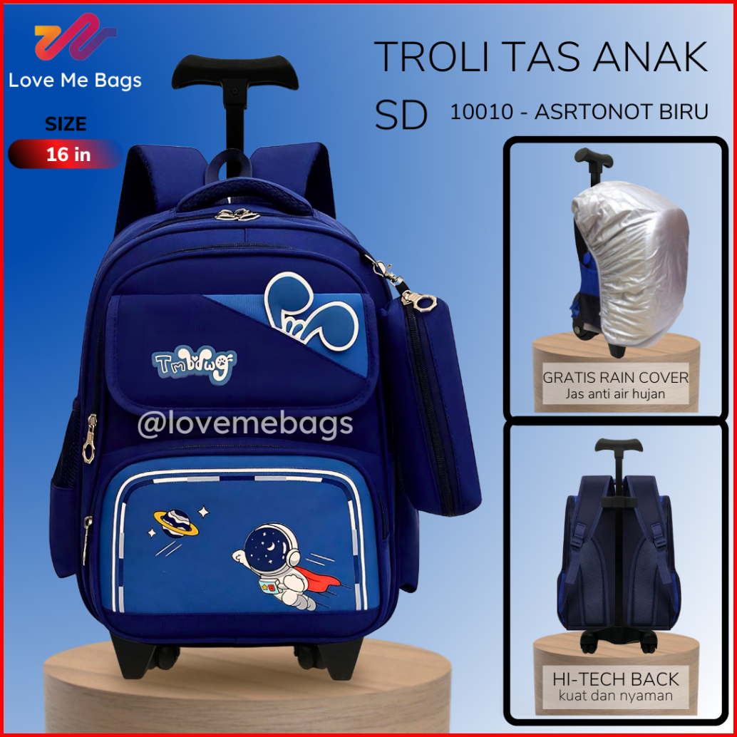 Lmb Tas Troli Sekolah Anak Laki Laki Sd Astronot Ukuran 16in Bahan Nilon Premium Tebal Gratis Kotak Pensil