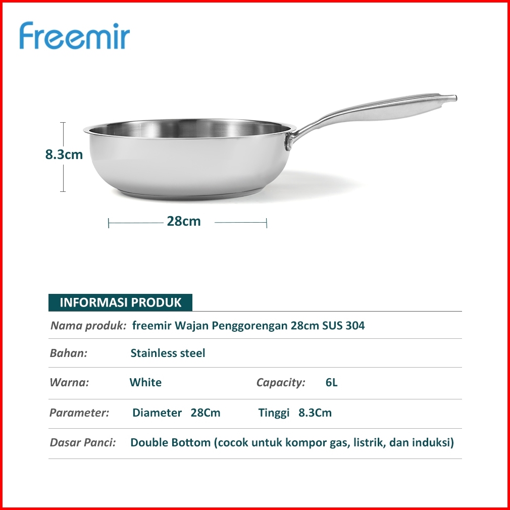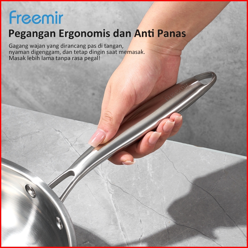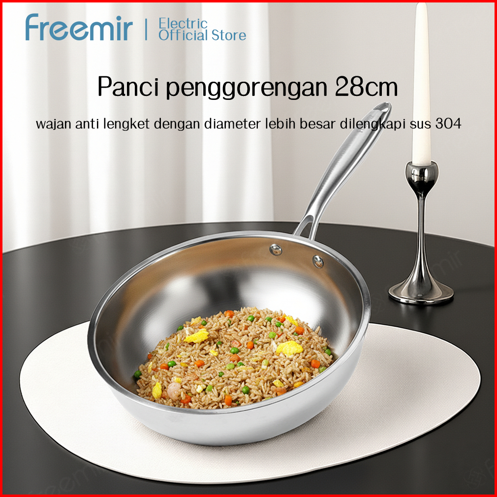 Promo Freemir Wajan Stainles Steel Sus 304 316 Ukuran 24 28 Cm Masak Sehat Zero Coating Foodgrade