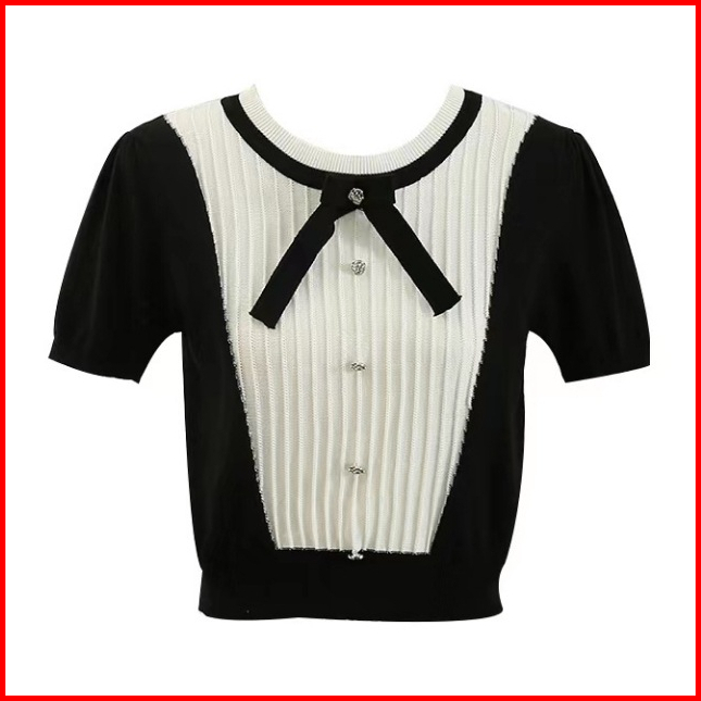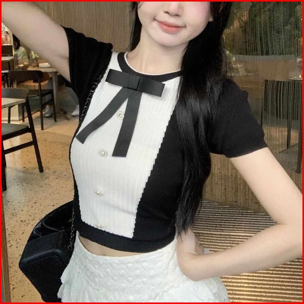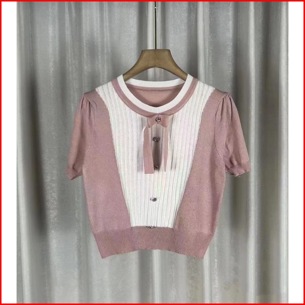 Miss O Bj1663 Baju Atasan Wanita Blouse Rajut Knit Korean Style Dengan Pita Lengan Pendek