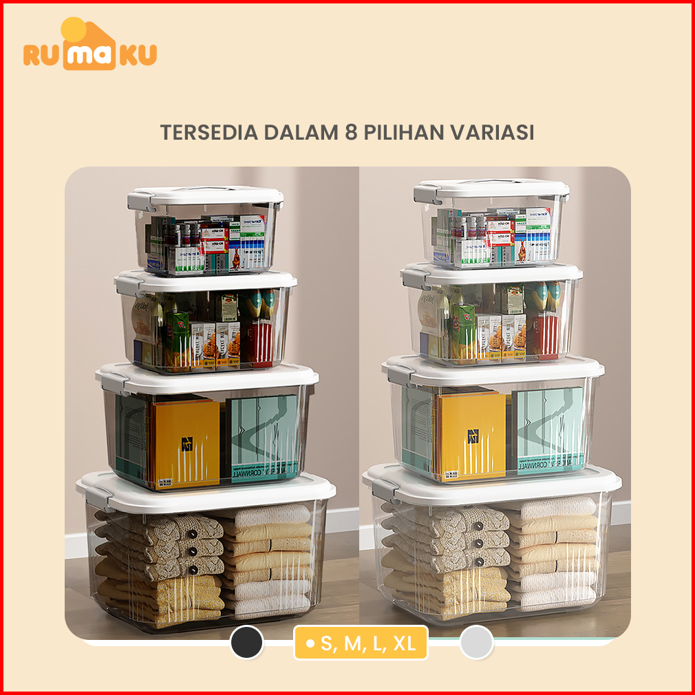 Rumaku Container Box Plastik Keranjang Penyimpanan Jumbo Besar Kotak Organizer Serbaguna Double Lock 1 Set 4 Pcs