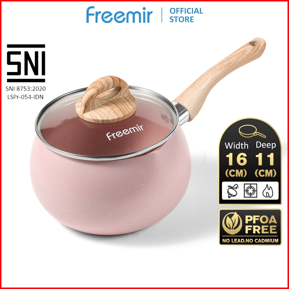Freemir Electric Panci Kopi Gemoy Mini Beige Pink 12cm 16cm Bahan Granit Kopi Susu Anti Lengket