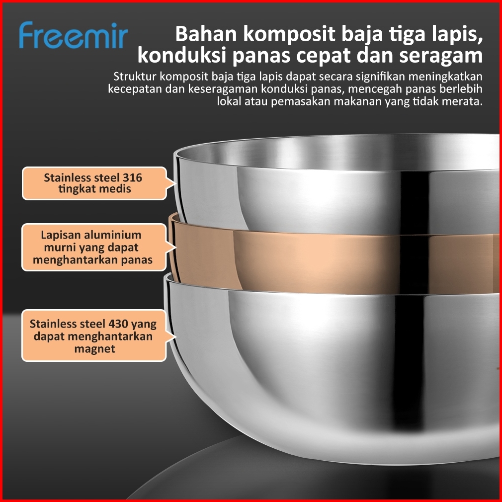New Launch Freemir Electric Freemir Wajan Stainless Steel 20 24cm Aisi 316 Zero-coating Anti Gores