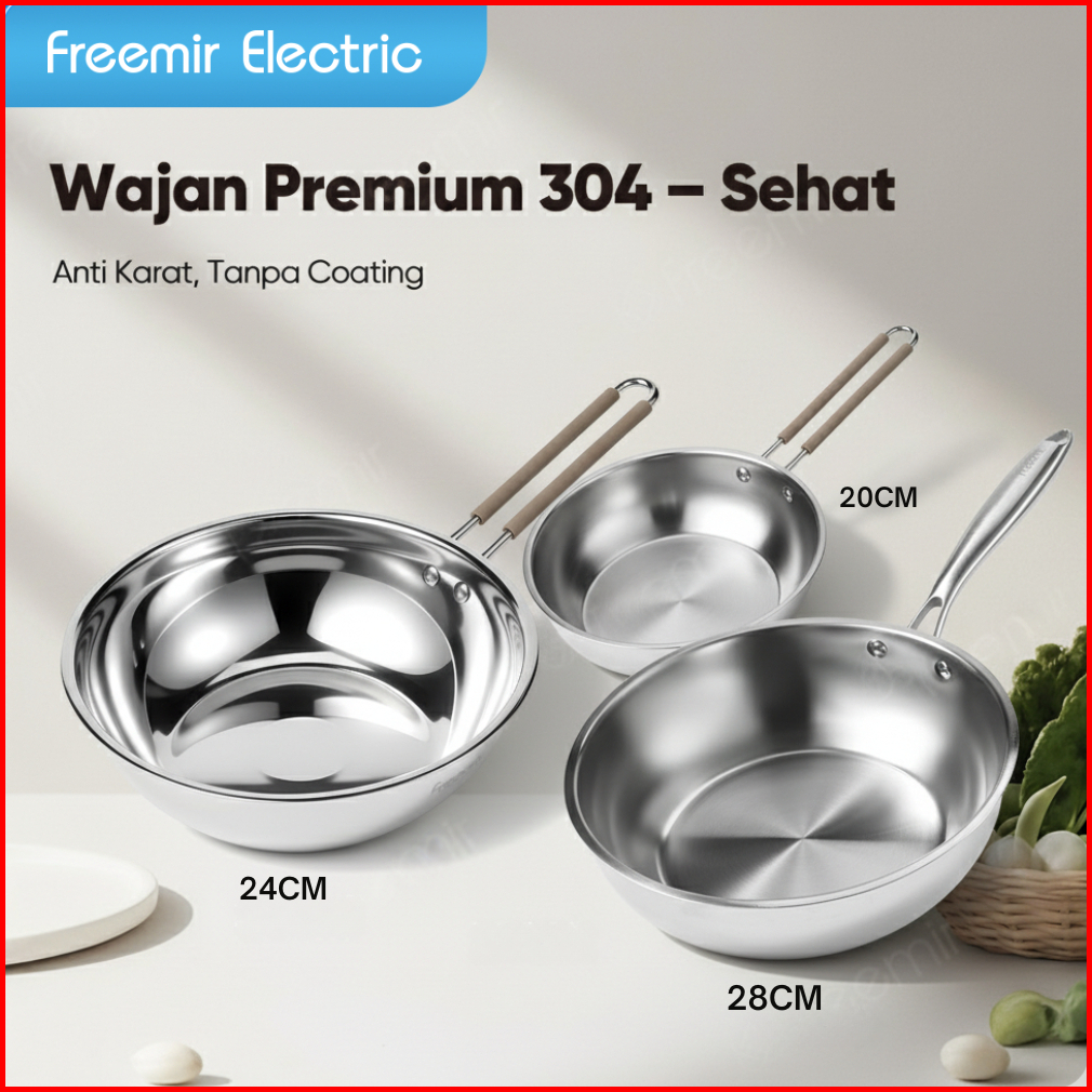 Freemir Electric Wajan Stainles Steel Sus 304 Ukuran 20 24 28 Cm Masak Sehat Zero Coating Foodgrade