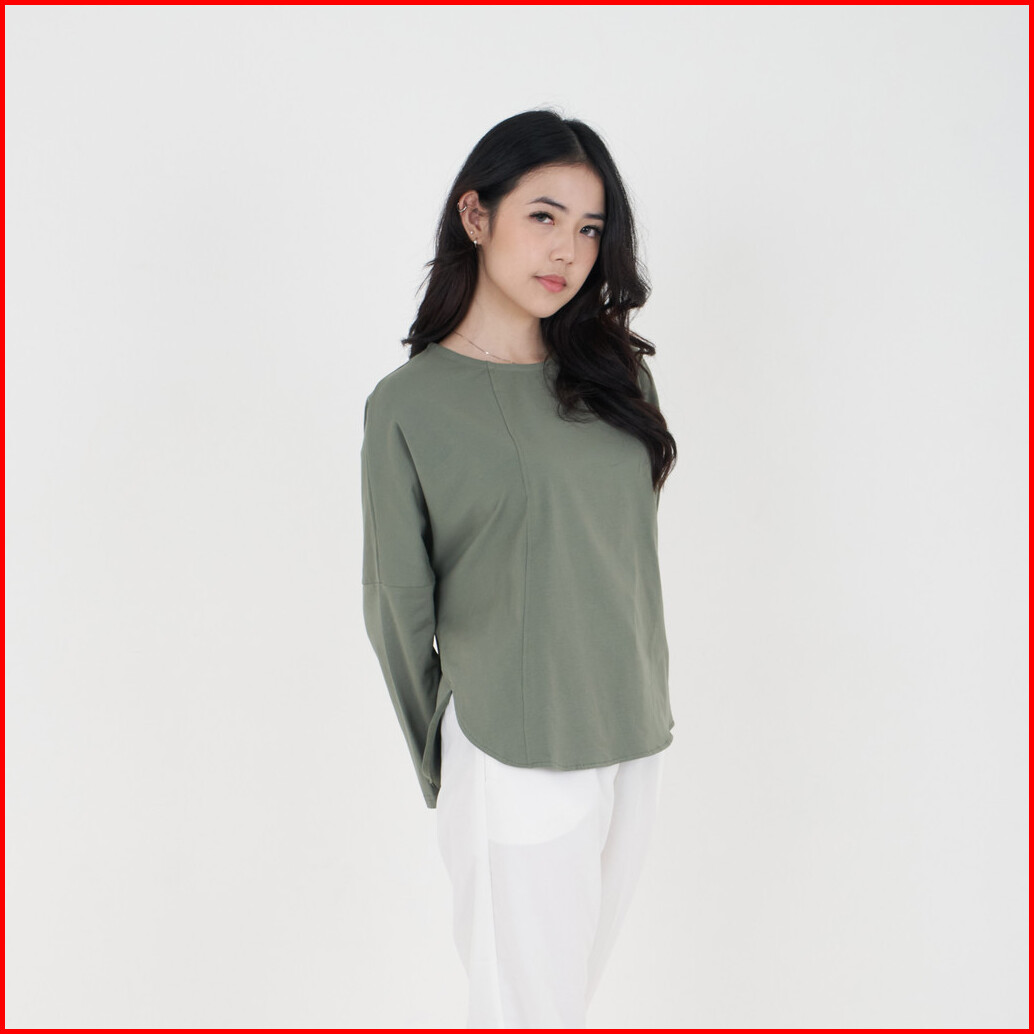 Queentin Kaos Wanita Oversize 0571 Combed Spandex Polos Lengan Panjang