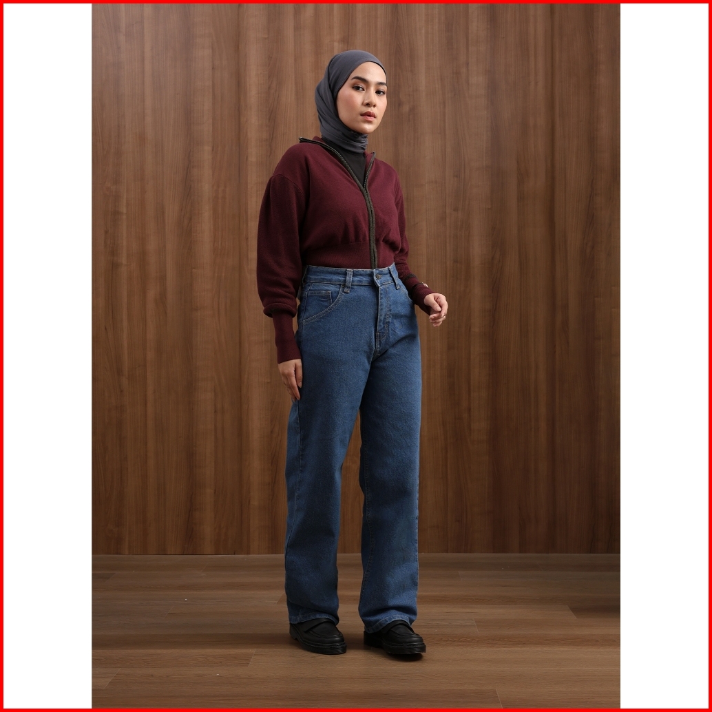 Thenblank Loose Denim Pants Mid Celana Jeans Wanita Nyaman