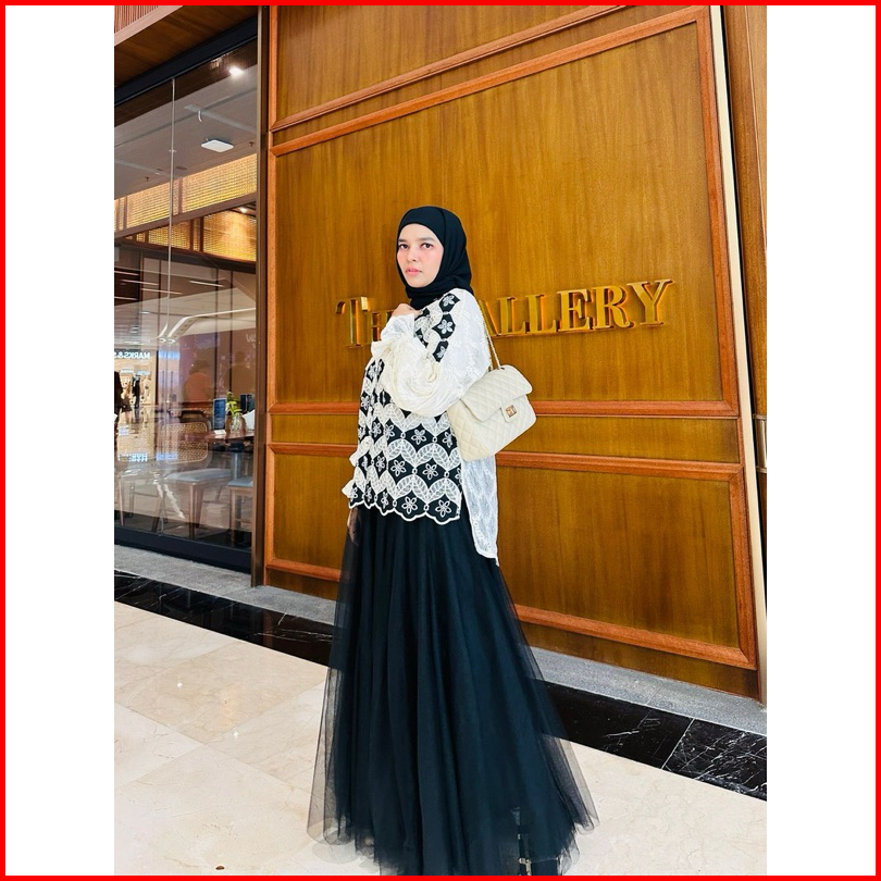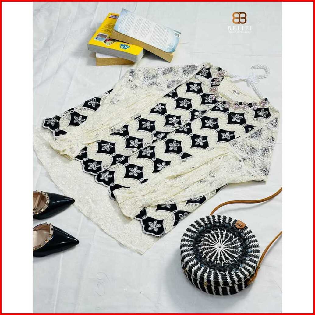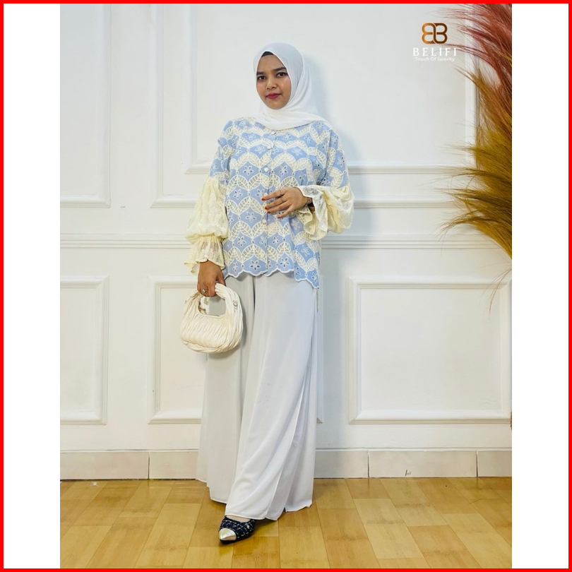 Special Promo By Belifi Wury Top Blouse Brukat Mewah Lengan Balon Kombinasi Korean Style