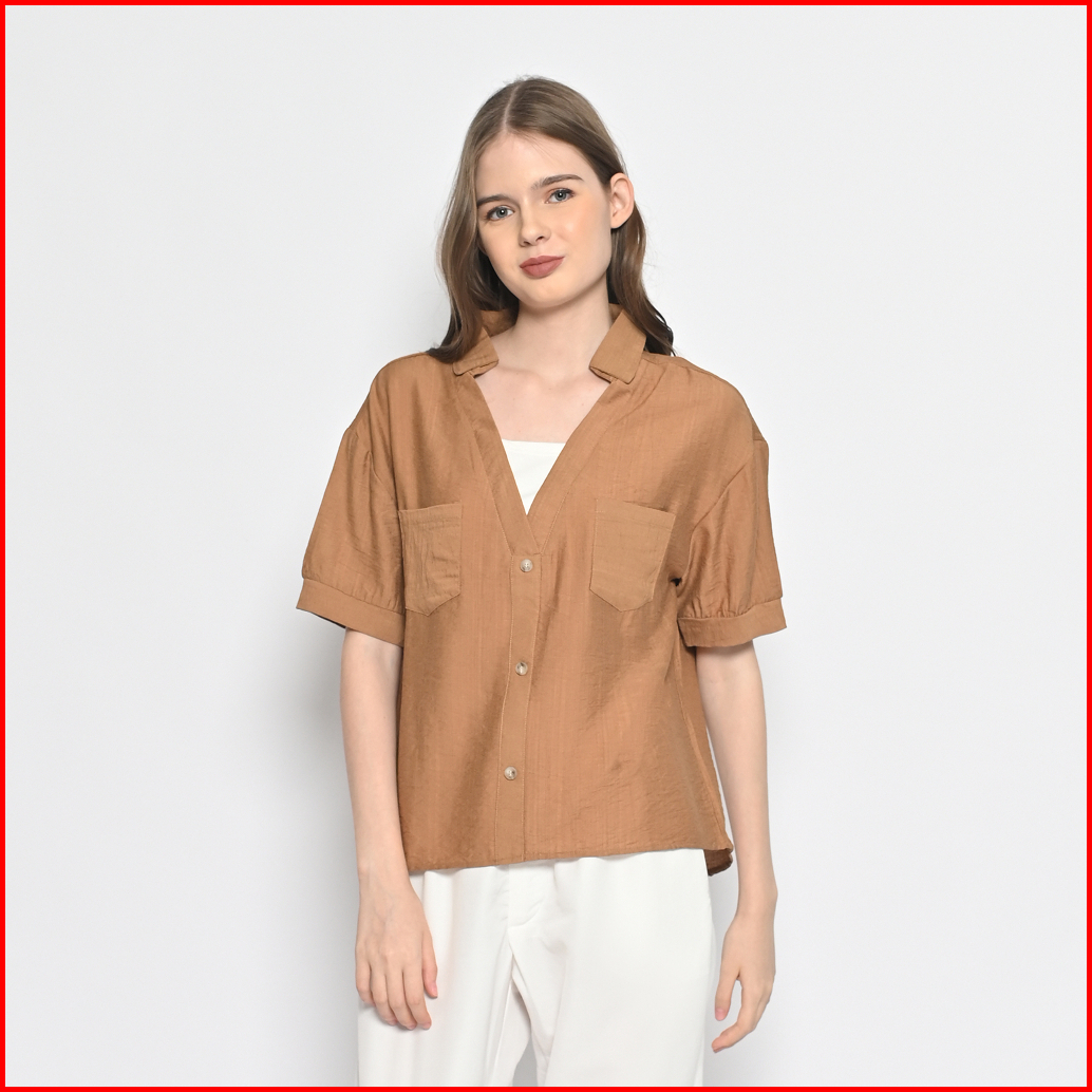 Queentin Blouse Wanita Casual 0343 Linen Polo Polos Lengan Pendek