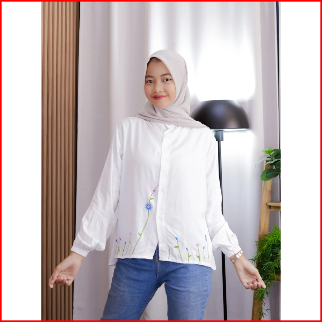 A G Apparel Atasan Wanita Kalila Top Blouse Rayon Korean Style Bordir Bunga