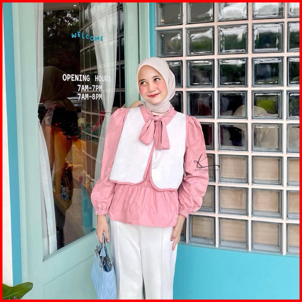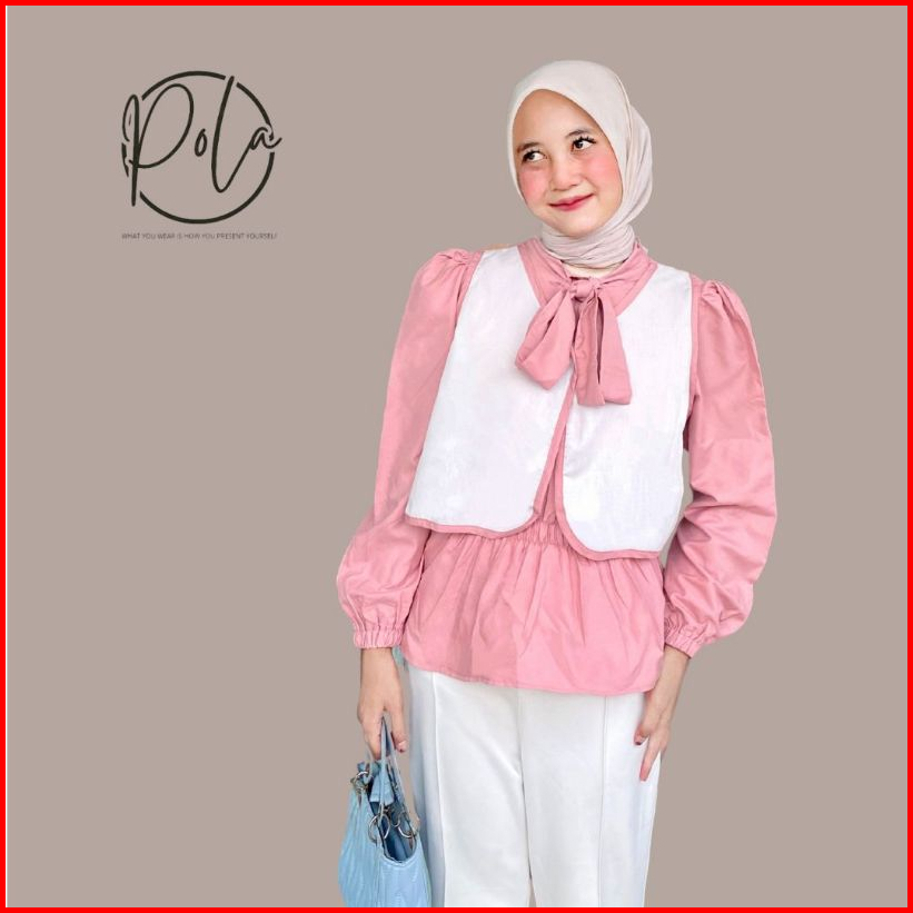 Pola Wear Livye Top Blouse Atasan Kemeja Wanita Korean Style Lengan Panjang Kerah Pita