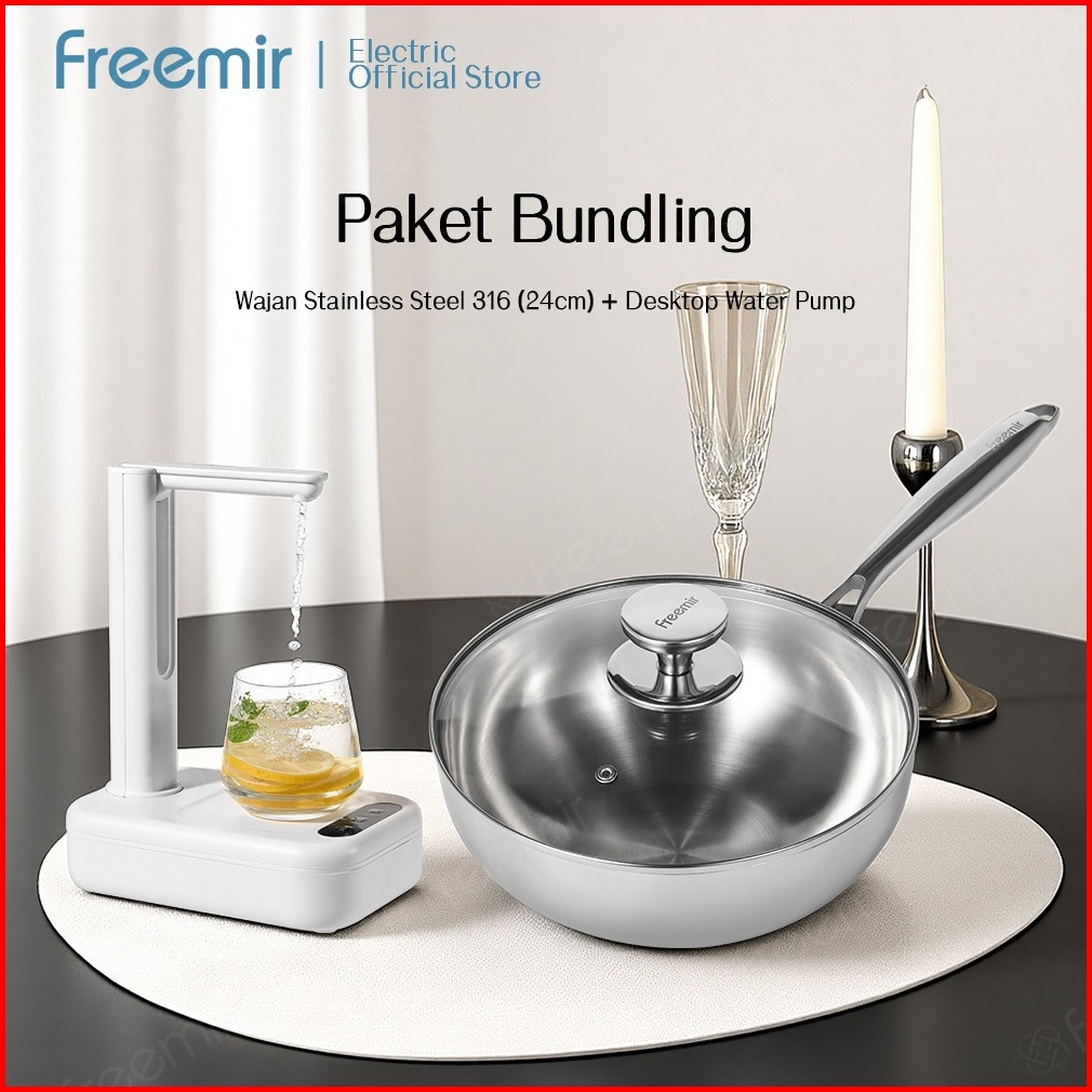 Paket Bundling Freemir Electric Wajan Stainless Steel 316 24cm Desktop Water Pump Type-c