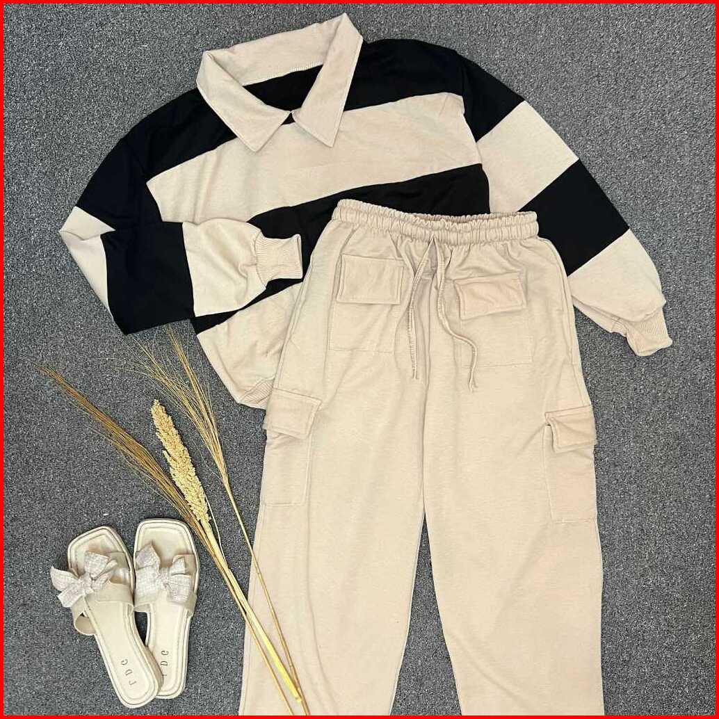 Bundling Ji Hoo Combie Crop Mix Celana Jooly Pants Set Setelan Wanita One Set