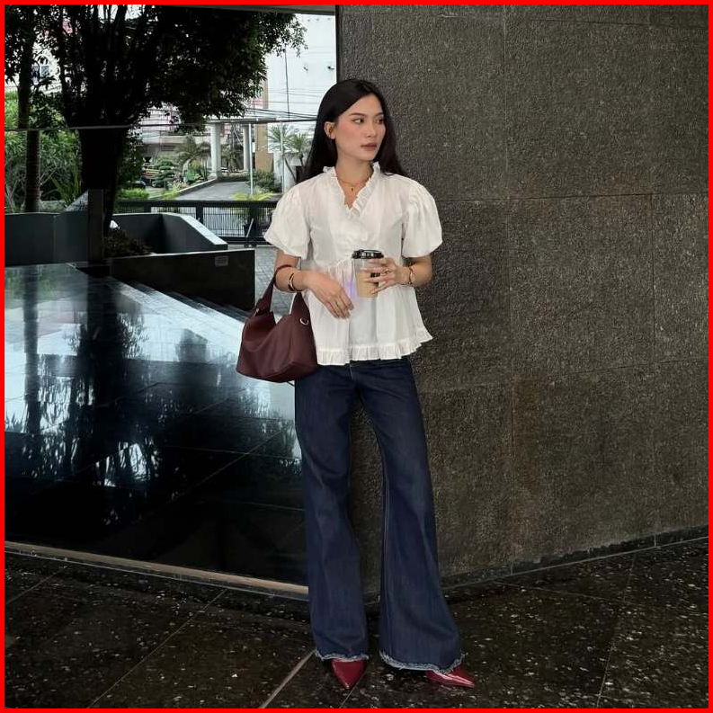 Nona The Label - Leticia Shirt Oversize Blouse Office Outfit Wanita Kekinian Korean Style Fit Check