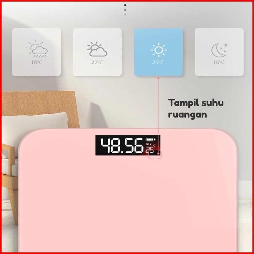 Timbangan Badan Digital 180kg Suhu Body Scale 26x26cm