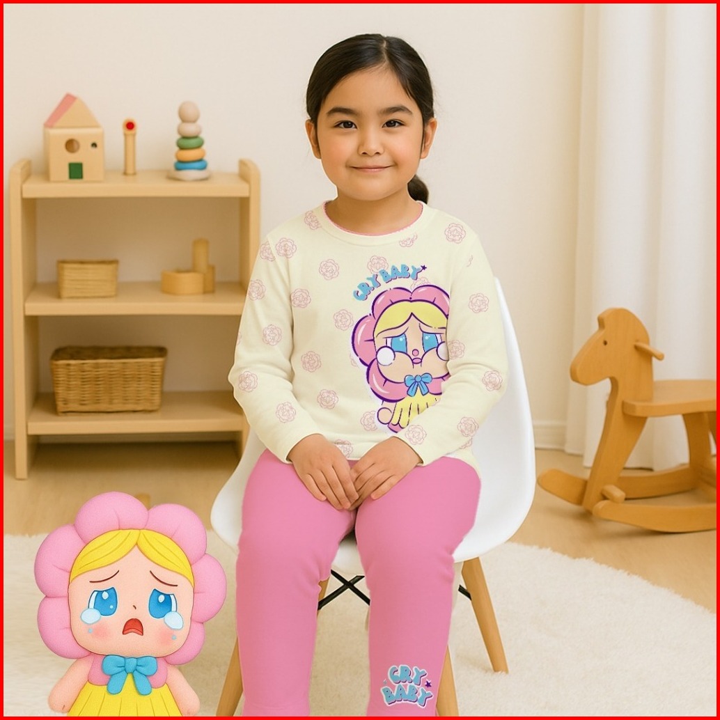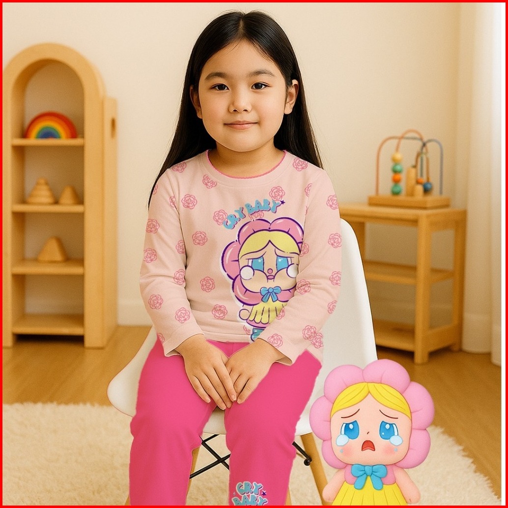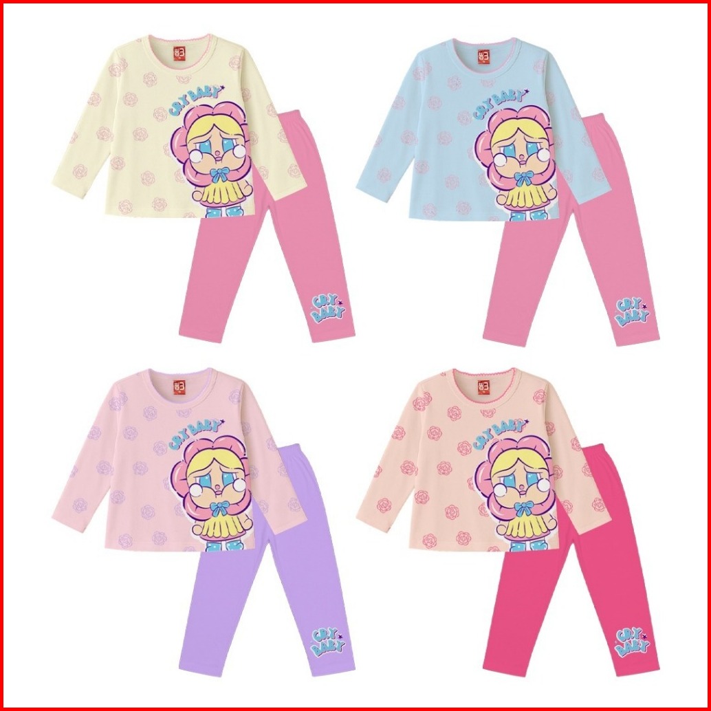 V3 We3 Setelan Stelan Baju Tidur Piyama Anak Perempuan Tangan Celana Panjang 1 - 13 Tahun Motif Cry Baby