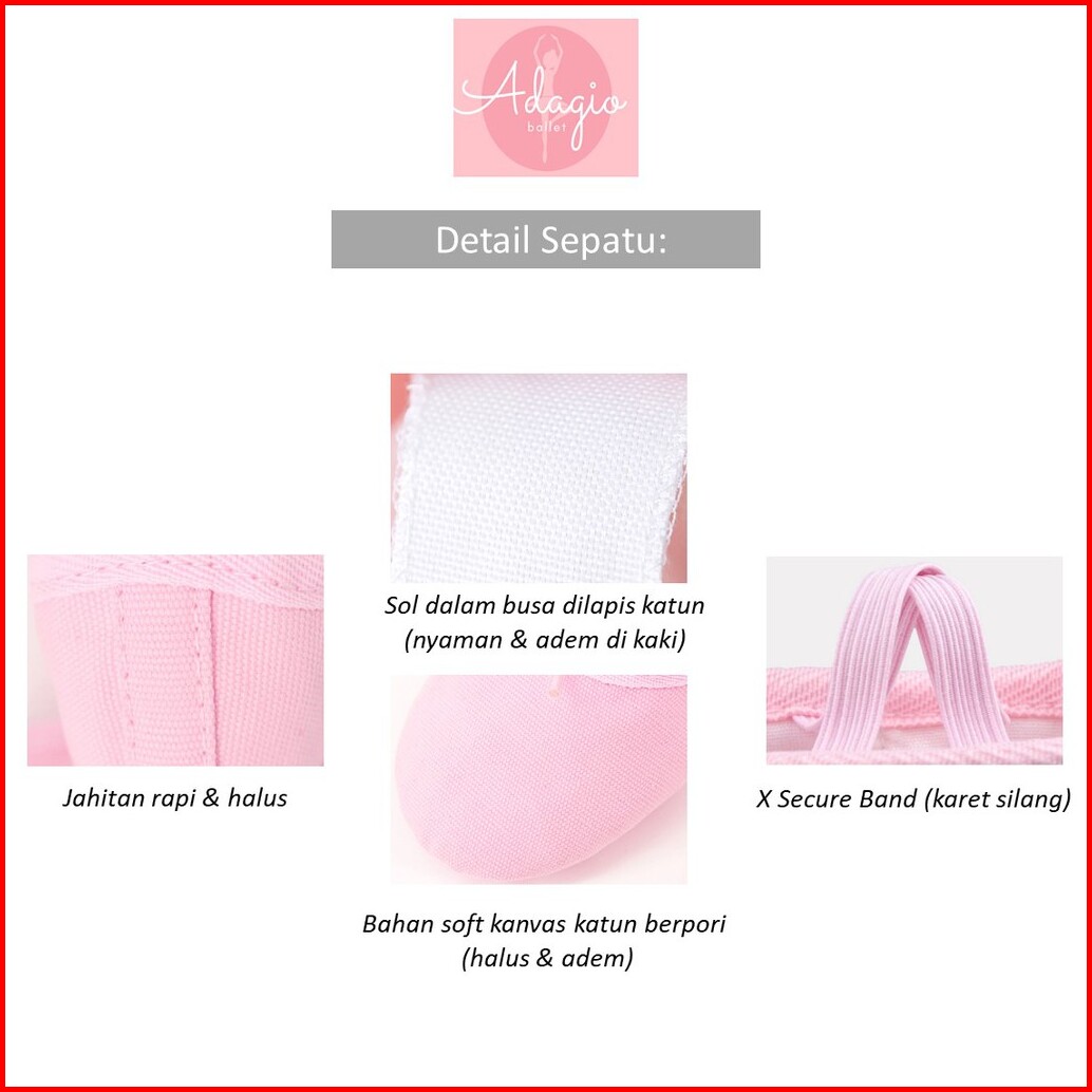 Ready Free Pouch - Adagio - Sepatu Balet Tari Tamborin Balerina Anak Perempuan Soft Shoes Kanvas Pink Nude Hitam Putih M