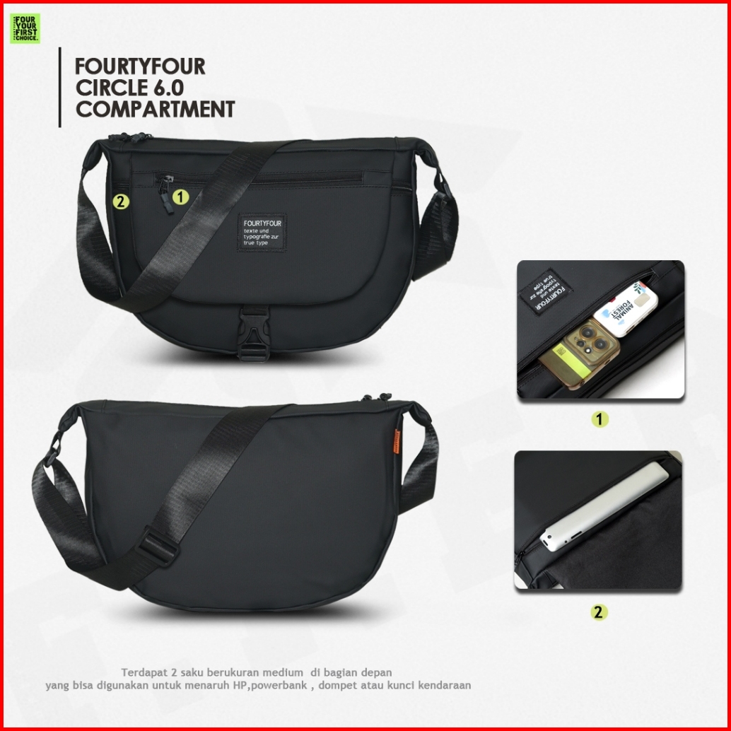 Fourtyfour Tas Selempang Pria Circle Anti Air Selempang Hitam Distro