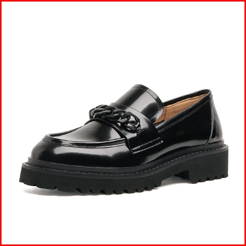 Sepatu Wanita Loafers Sepatu Docmart Rantai Black Glosy Premium Rbg 09