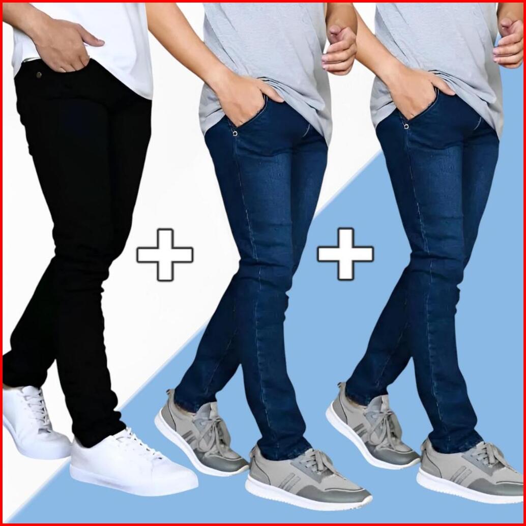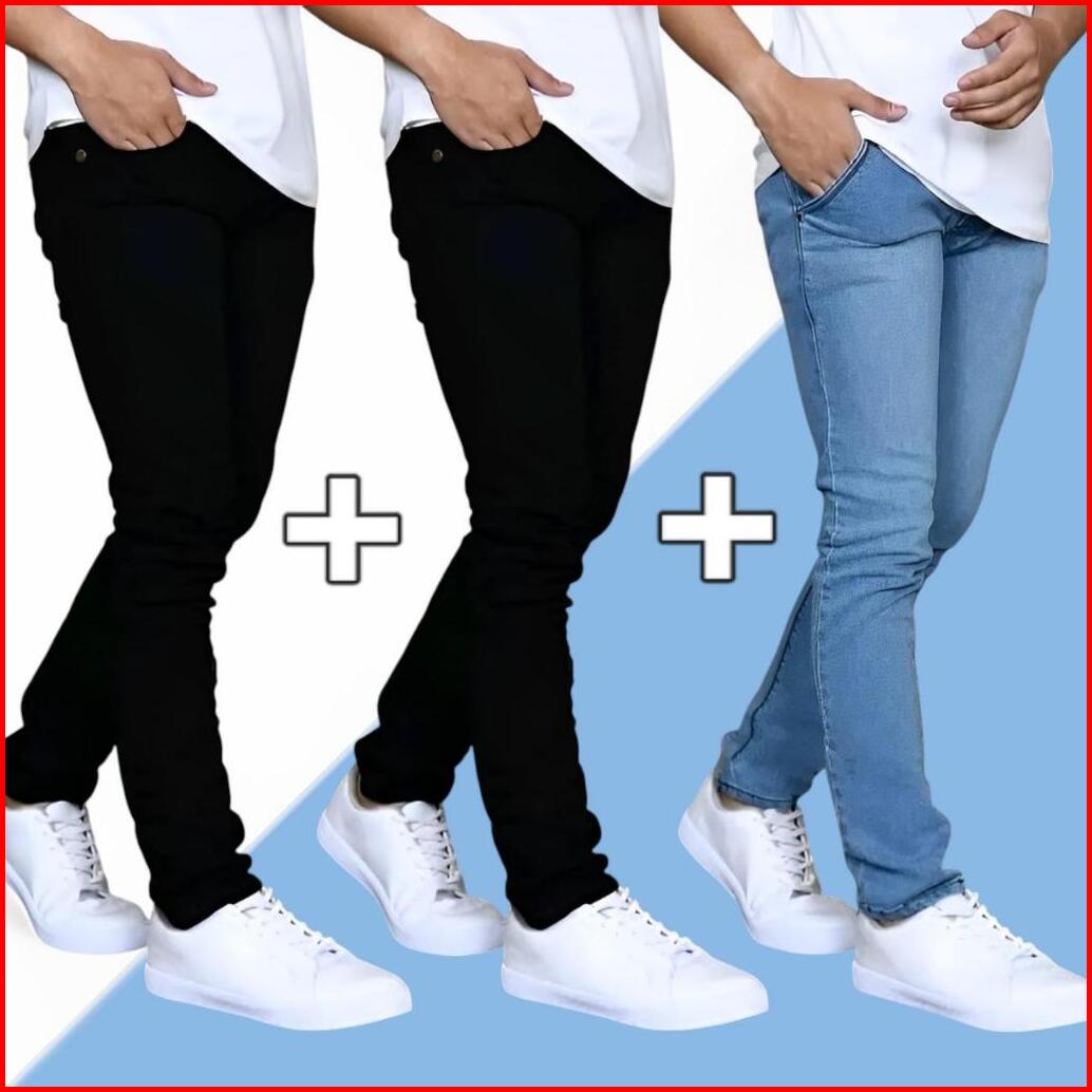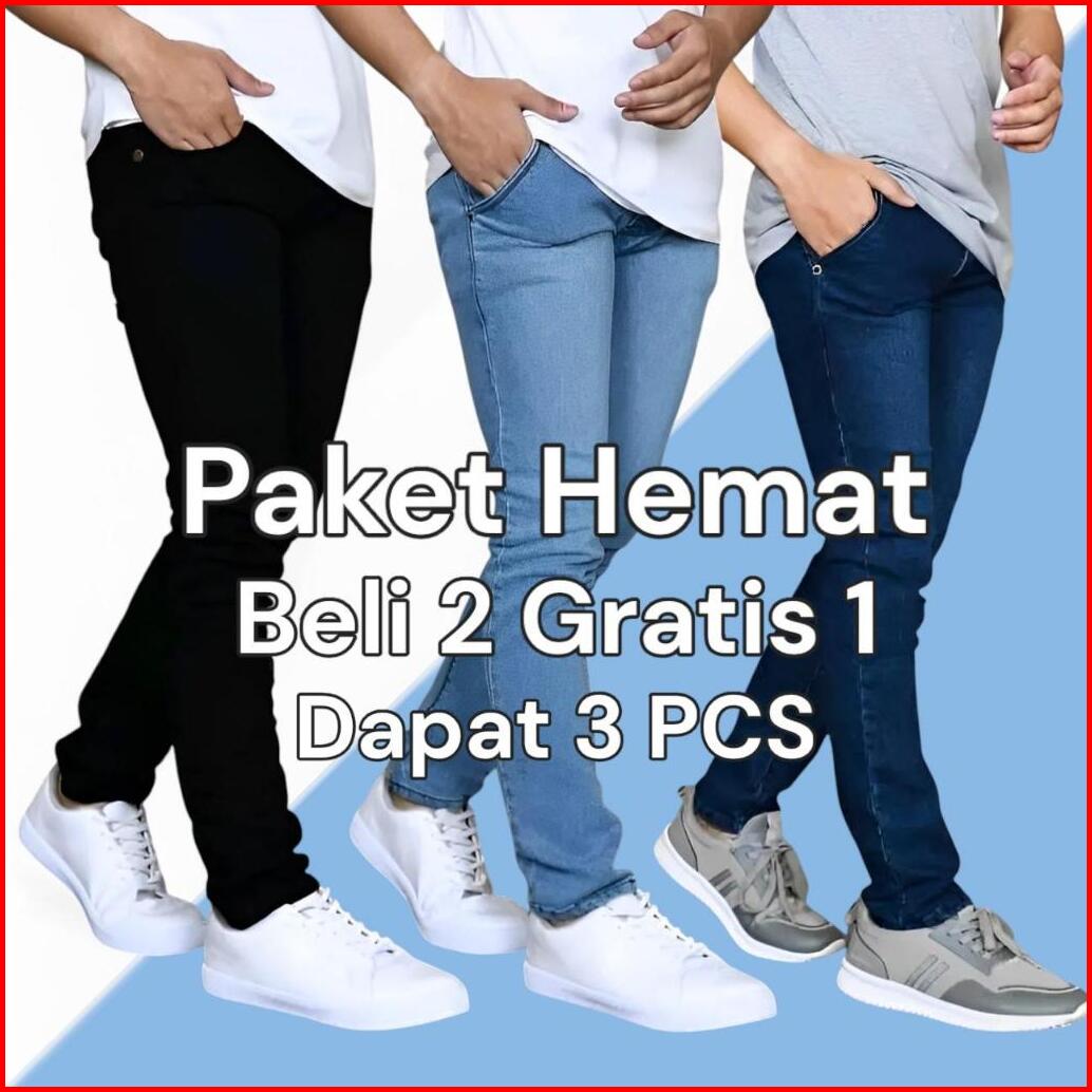 Paket Hemat Beli 2 Gratis 1 Pcs Celana Jeans Pria Slim Fit Celana Jin Cowok Pensil Celana Jeans Panjang Pria Celana Panj