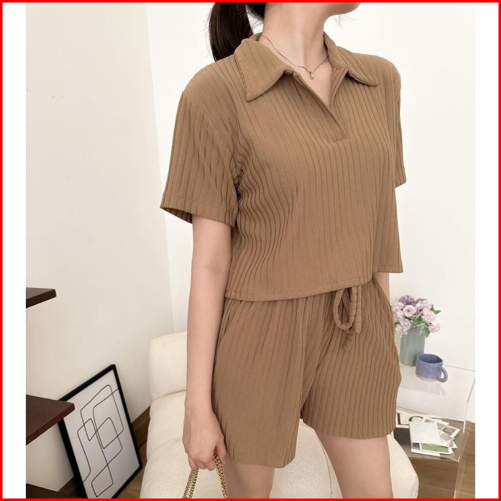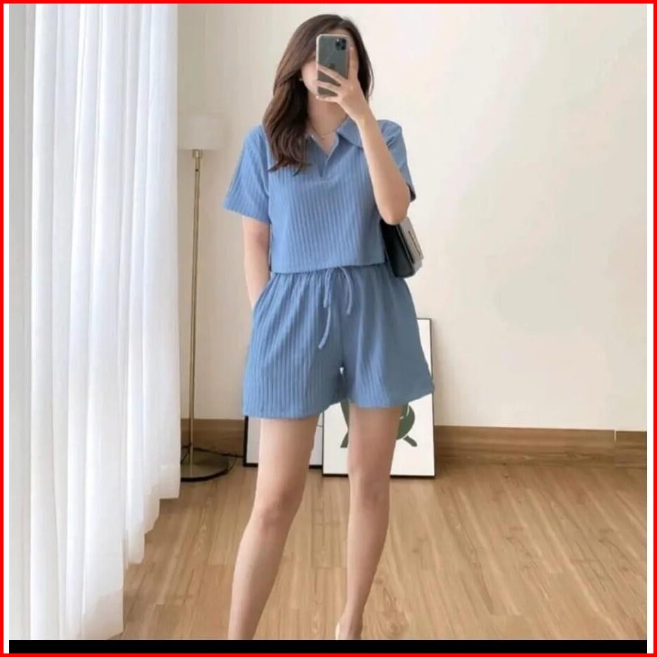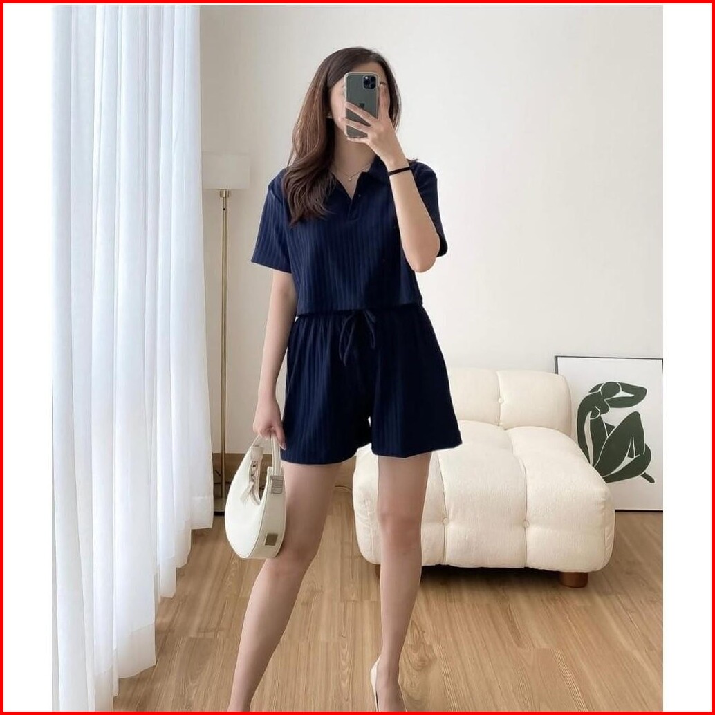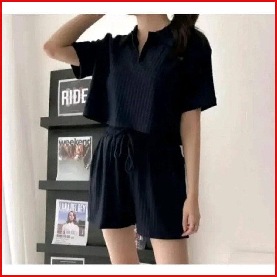 Setelan Wanita Crop Top Oneset Cassia Hornet Premium Wanita - Set Celana Pendek Korean Style