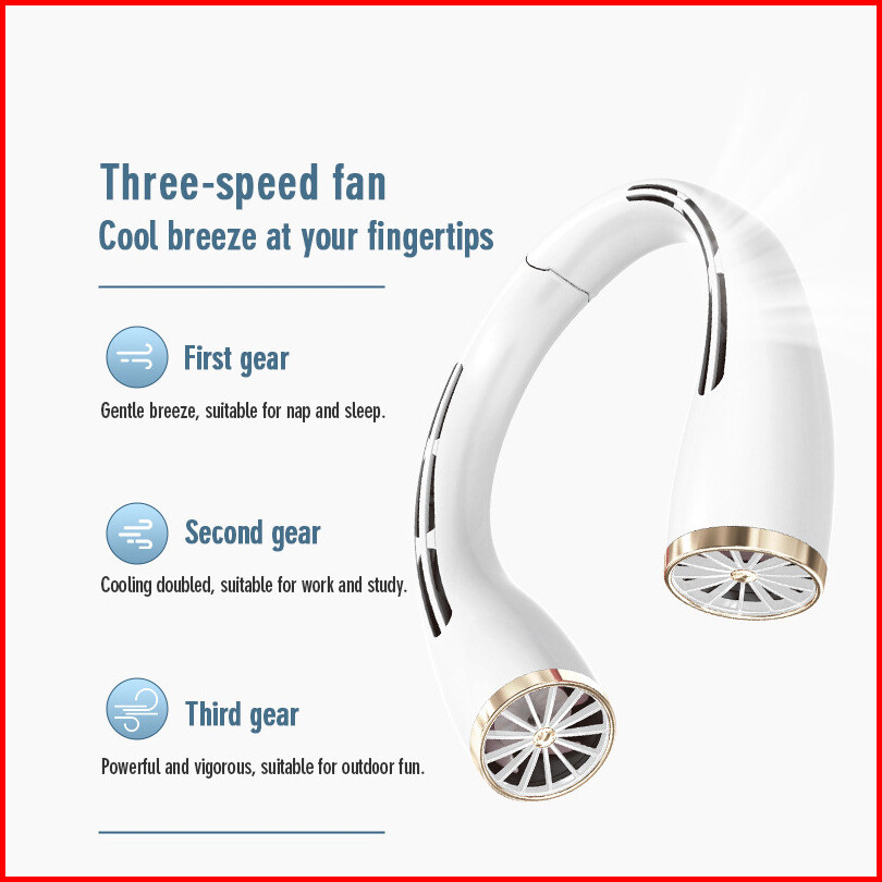 Roxart Kipas Angin Leher Portable Sport Lazy Neck Fan 3-speed Wind Tanpa Baling Baling