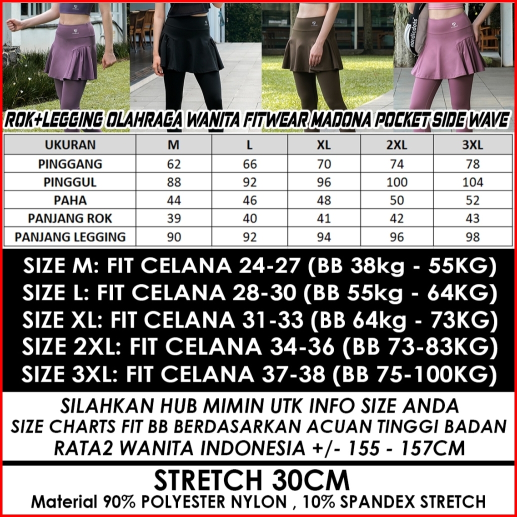 Fitwear Rok Legging Olahraga Padel Dryfit Wanita Madona Pocket - M - 3xl
