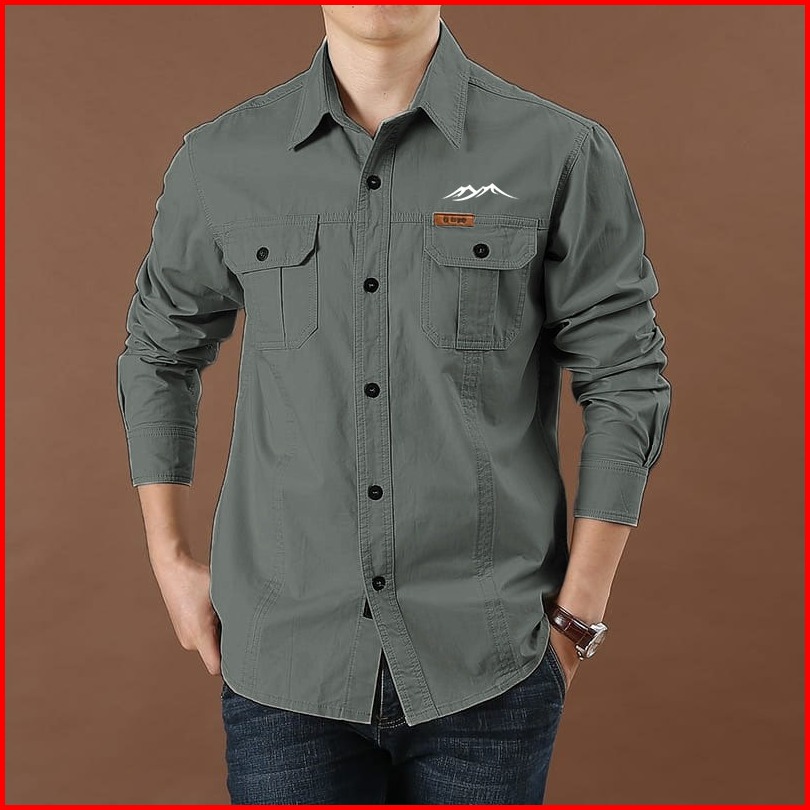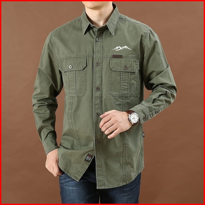 Theqacip - Kemeja Outdoor Lapangan Kemeja Logo Gunung Kemeja Tactical Kemeja Pria Katun Kemeja Gunung Santai Original Pr