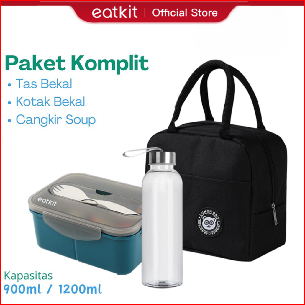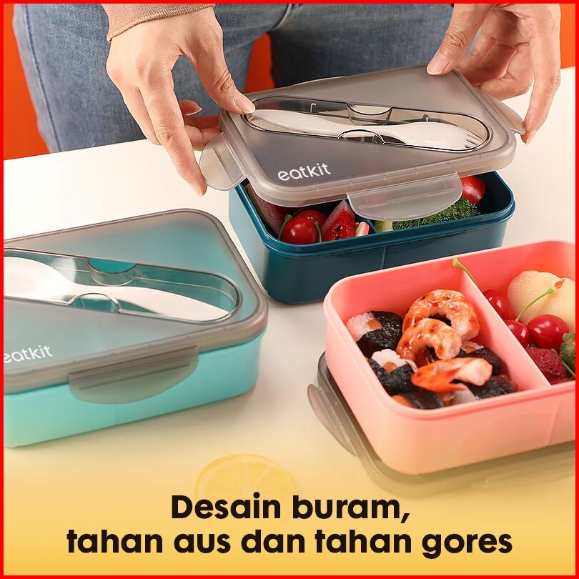 Eatkit Kotak Makan Siang Portabel Terisolasi 1200ml Tiga Kompartemen Pemanas Microwave Kotak Makan Siang Gratis Sendok