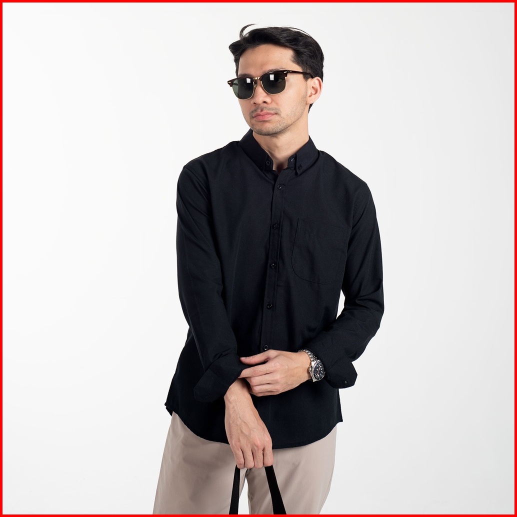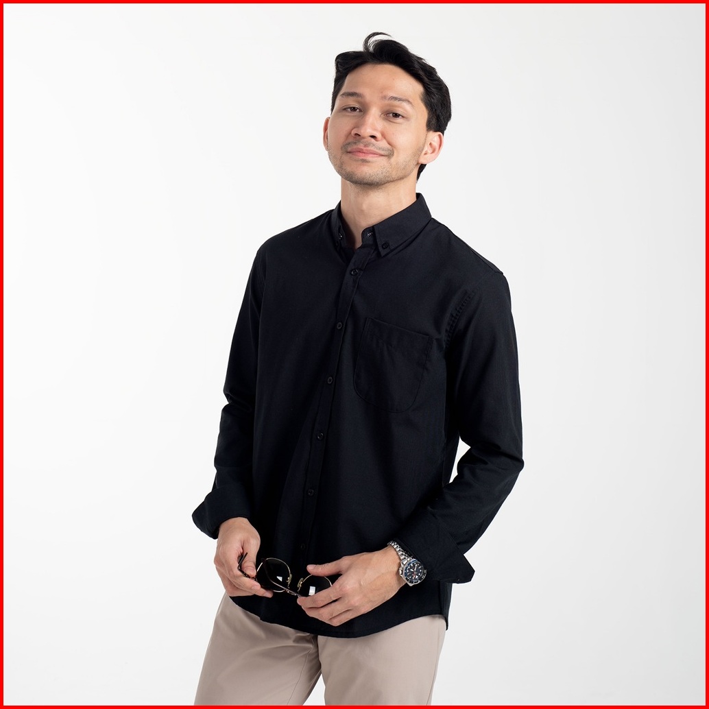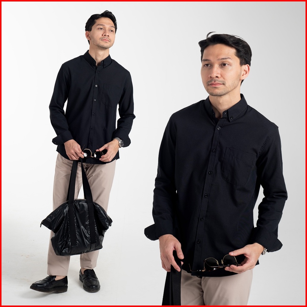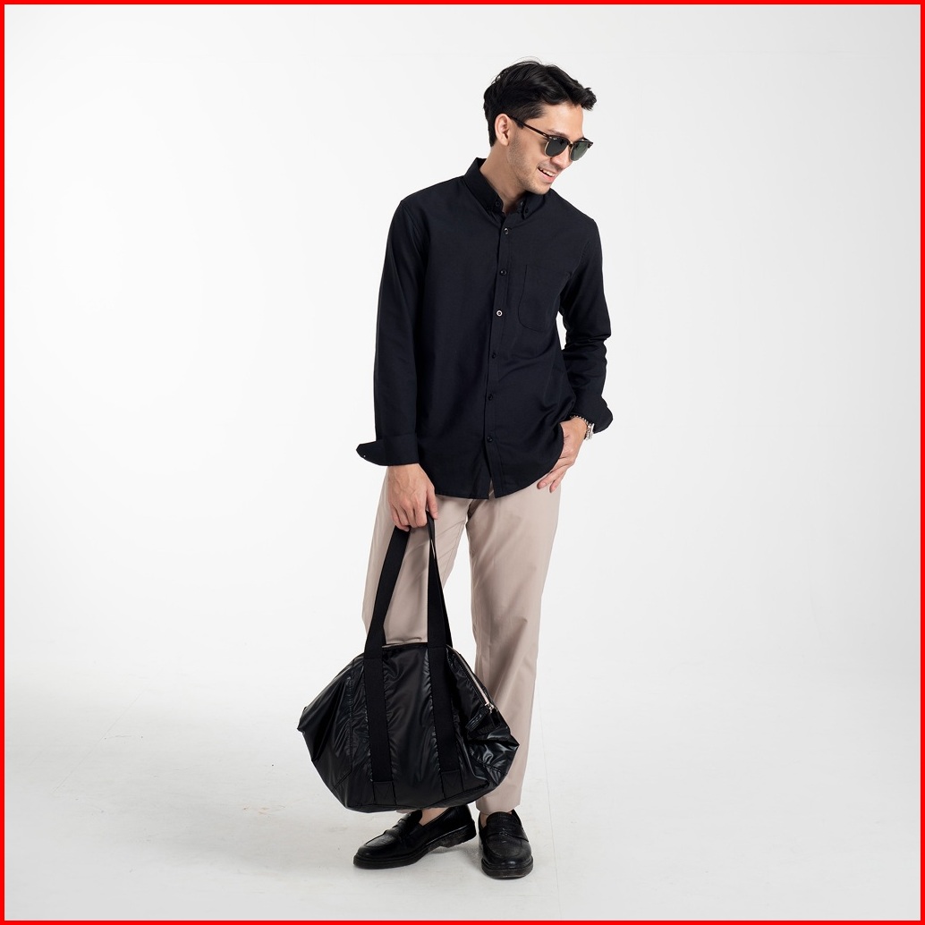 Kemeja Polos Pria Woodcutter Basic Longsleeve - Full Black Hitam Lengan Panjang Kerja