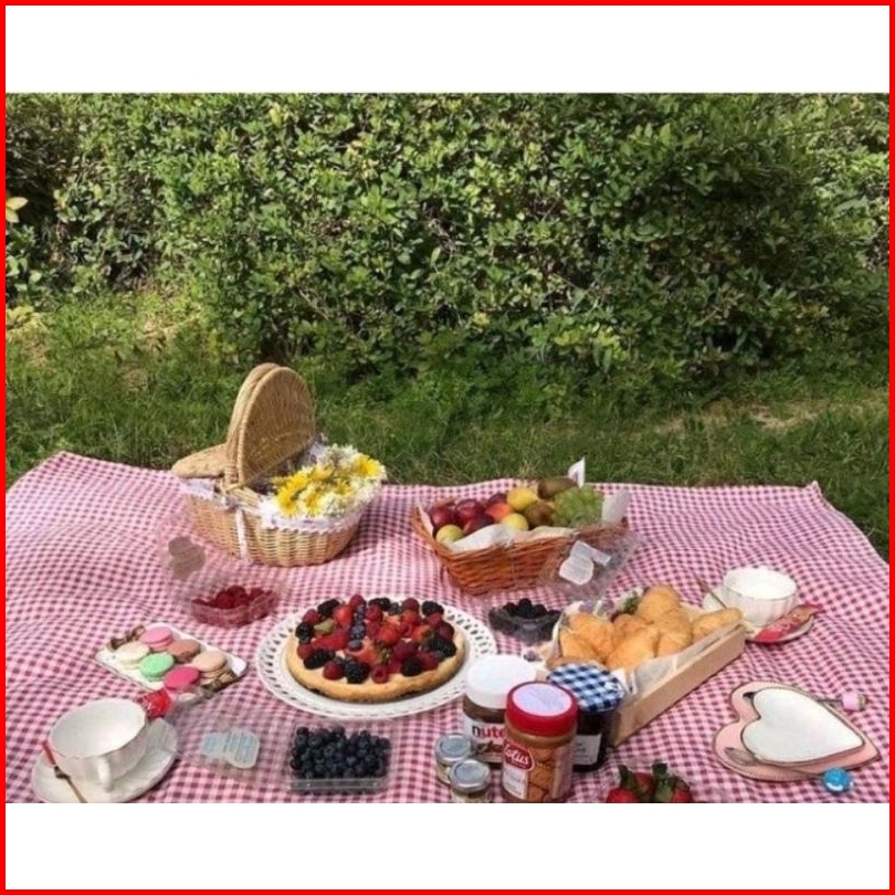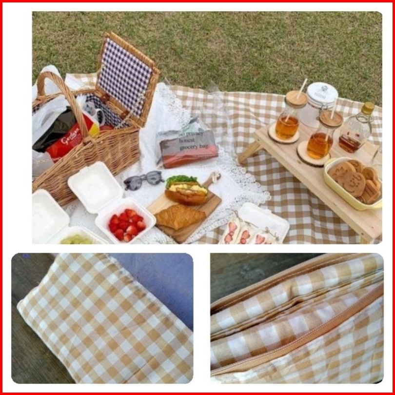 Tikar Kain Fotografer Piknik Estetik Motif Kotak Kecil Lengkap Dengan Tasnya
