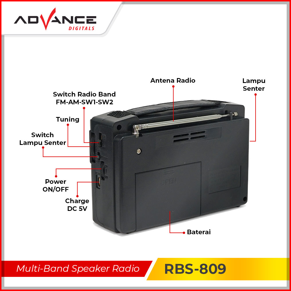 Advance Rbs809 Multi-band Speaker Radio Portable Garansi Resmi 1 Tahun